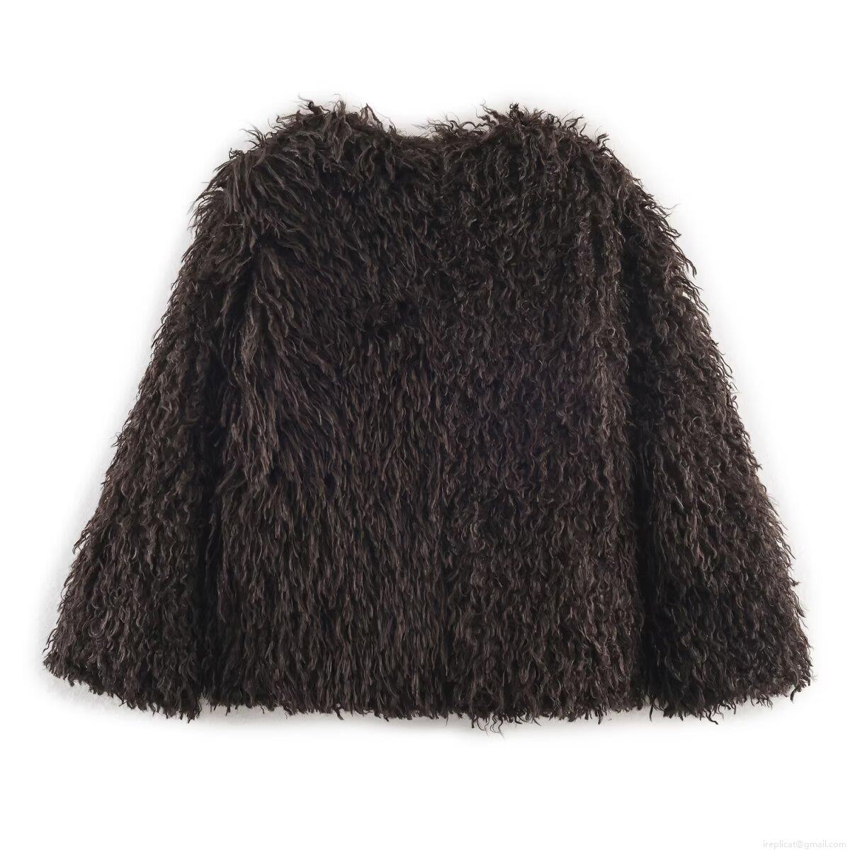 • Women's Fashion Faux Fur Coat Winter Warm Plush Artificial Fur Jacket Solid Coffee Color Round Neck Outerwear With Hook-and-Eye Closure For Casual Daily Wear
