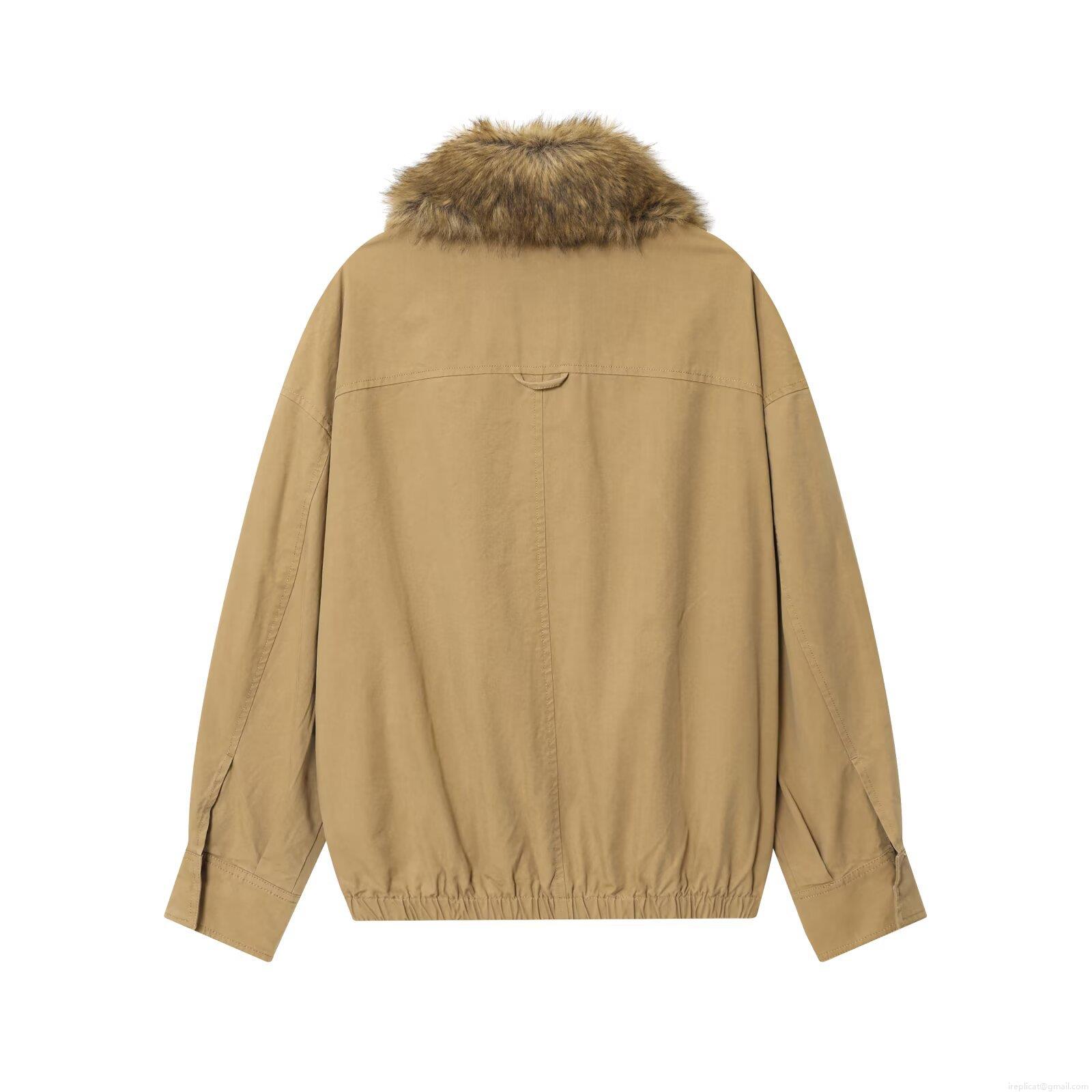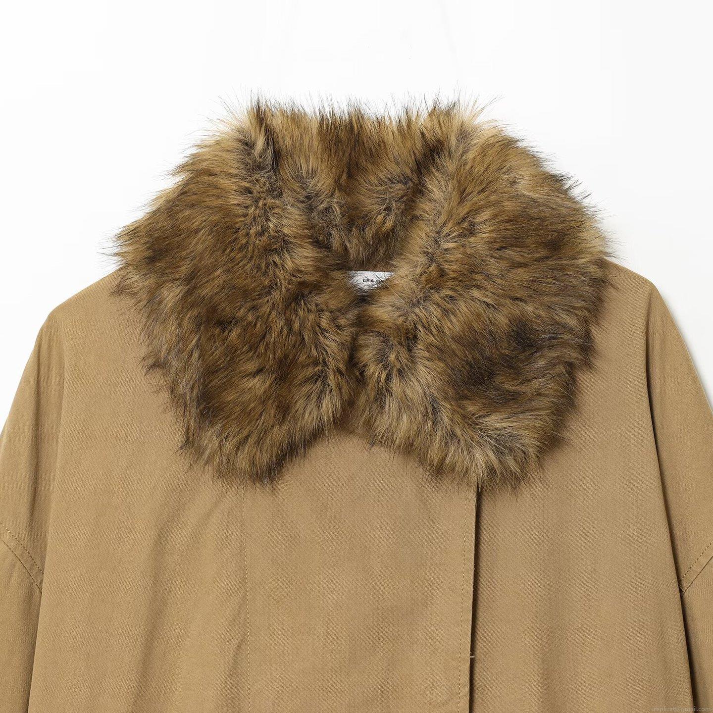• Women's Fashion Faux Fur Collar Bomber Jacket Khaki Loose Fit Warm Winter Coat Outwear with Zipper and Buttons Polyester Spandex Cool Silk Cotton Blend Casual Jacket