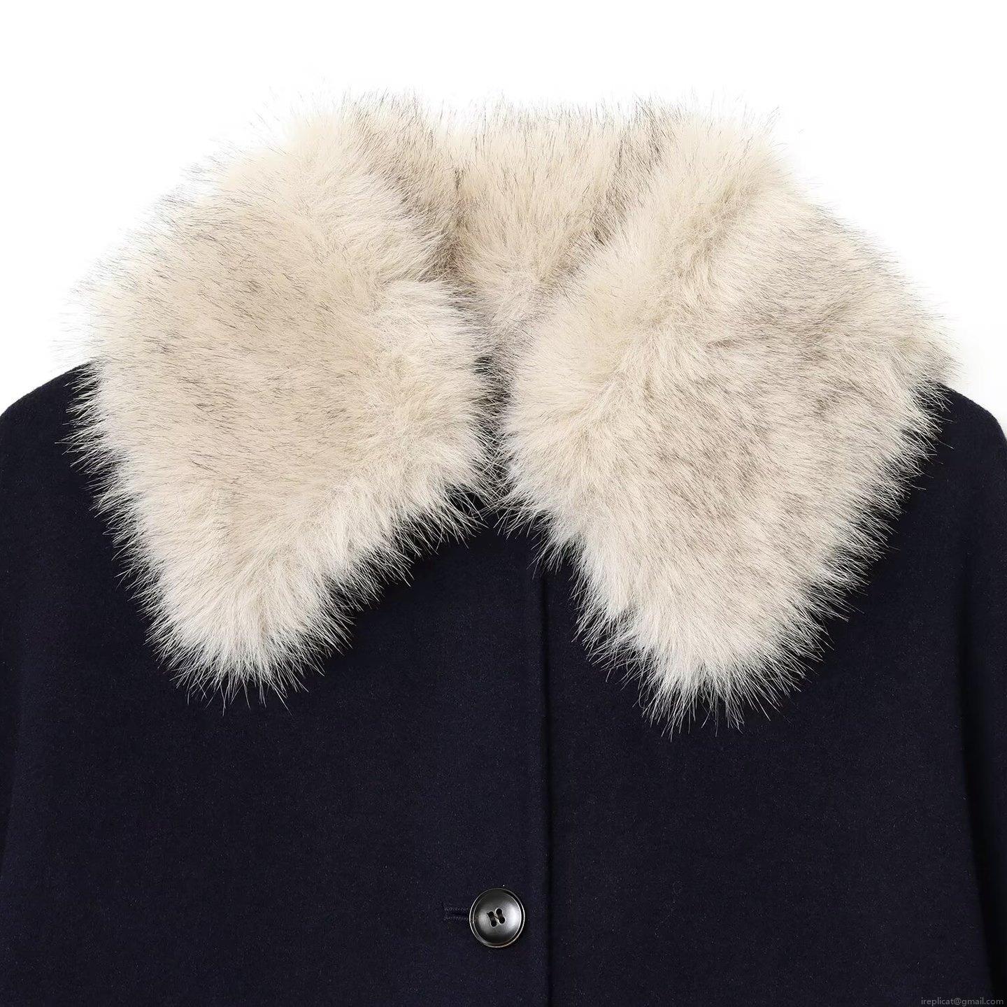 • Women's Fashion Faux Fur Collar Woolen Jacket Mid-Length Loose Single Breasted Coat Autumn Winter Commute Elegant Solid Color Outwear