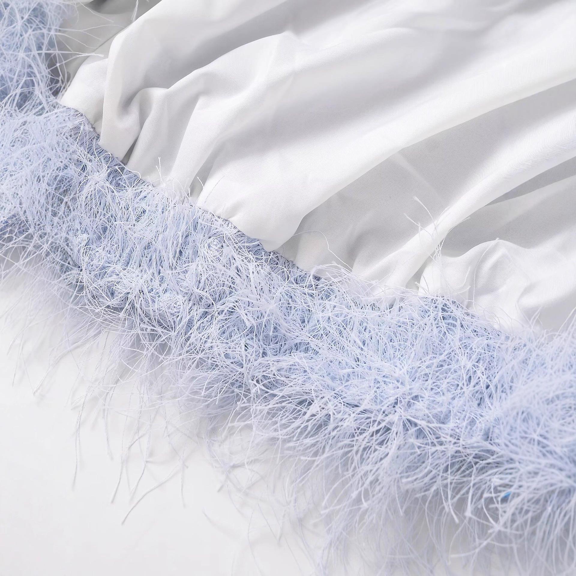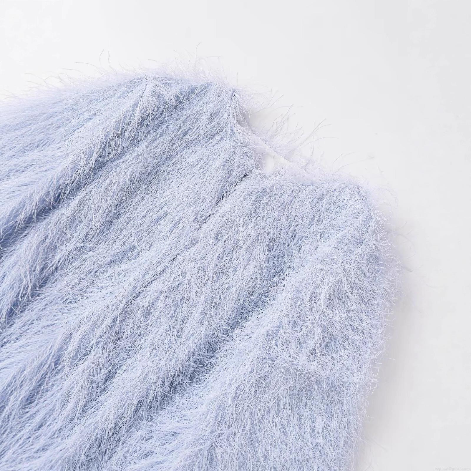 Women's Fashion Faux Fur Fringe Jacket Long Sleeve Round Neck Light Blue Plush Baseball Coat Autumn Winter Streetwear Outwear For Ladies