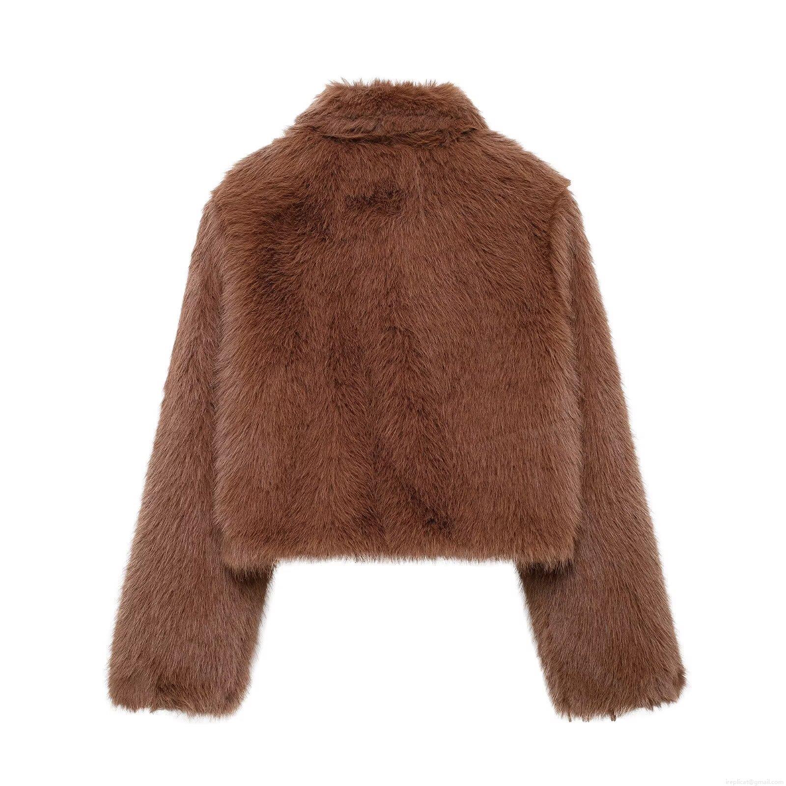 Women's Fashion Faux Fur Jacket Winter Lapel Long Sleeve Zipper Plush Coat Solid Color Warm Short Outerwear Streetwear Lady Jacket