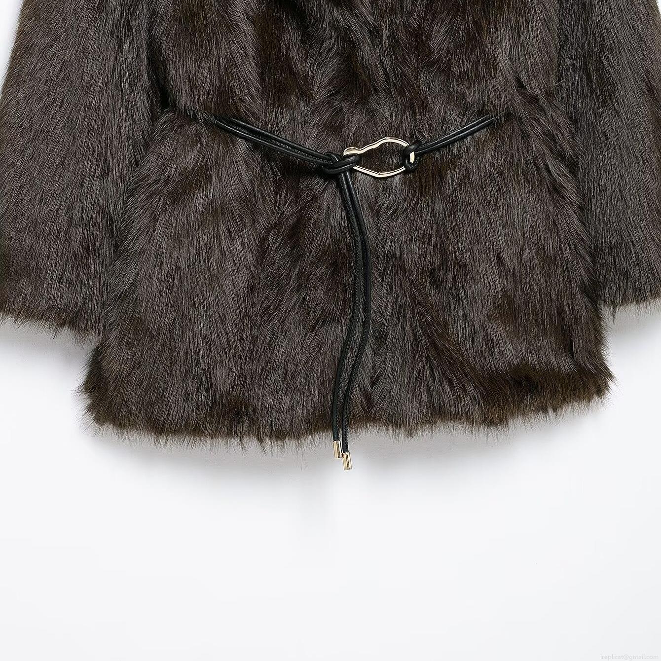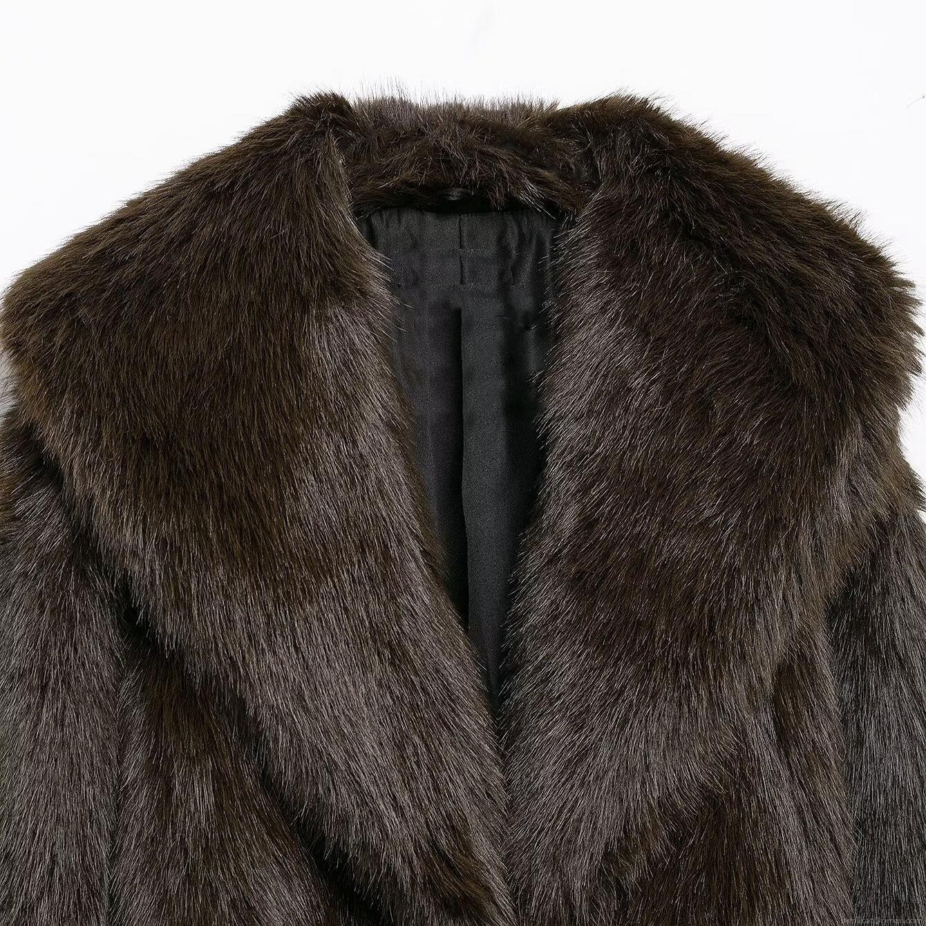 • Women's Fashion Faux Fur Mid-length Coat Elegant Warm Winter Jacket With Adjustable Belt Big Lapel Solid Color Outerwear For Ladies Office Dating Daily Wear