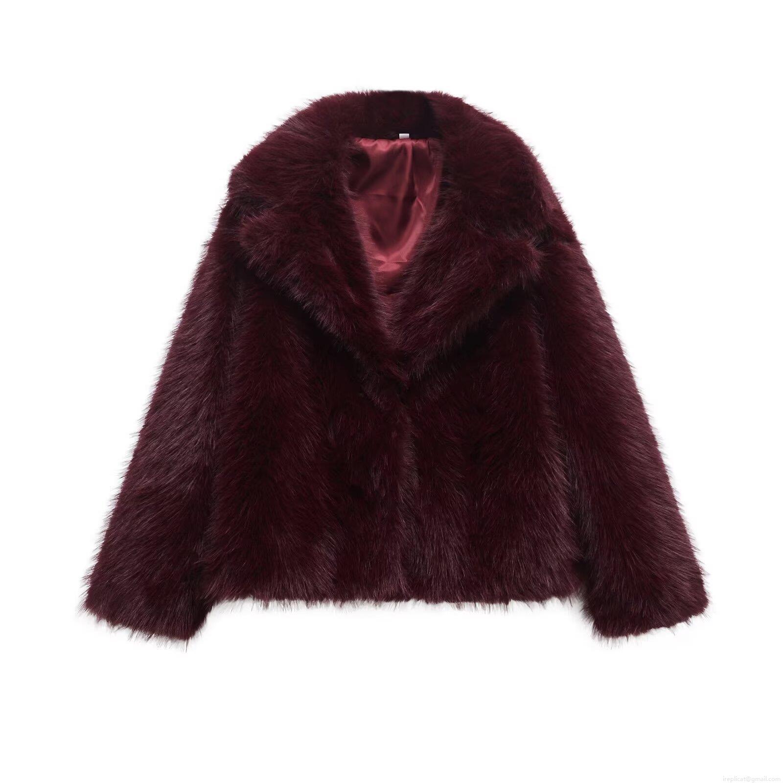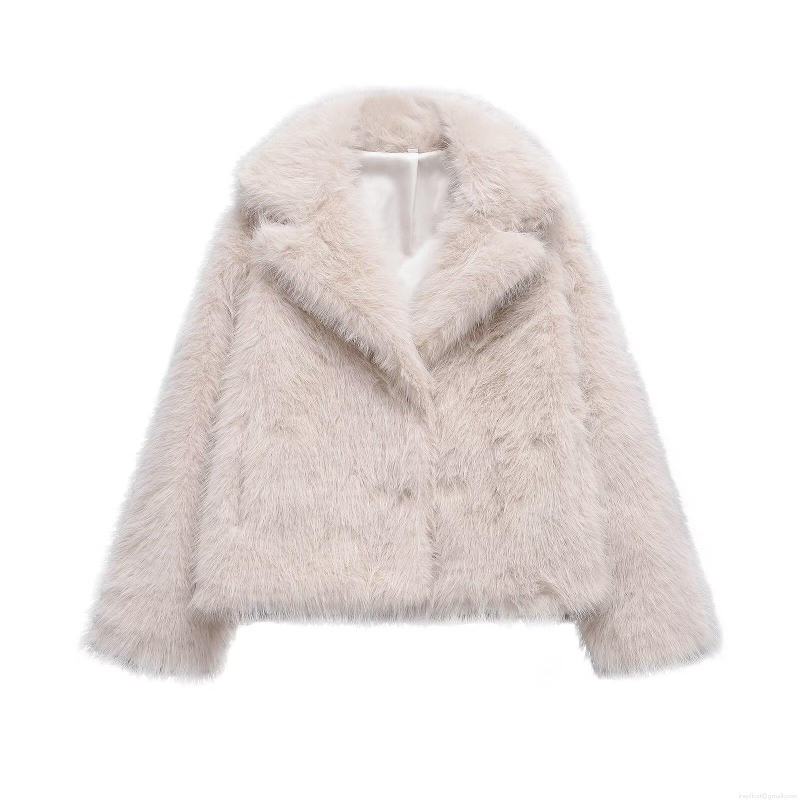 • Women's Fashion Faux Fur Short Jacket Elegant Solid Color Lapel Long Sleeve Warm Winter Outwear For Party Daily Leisure