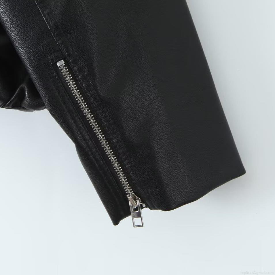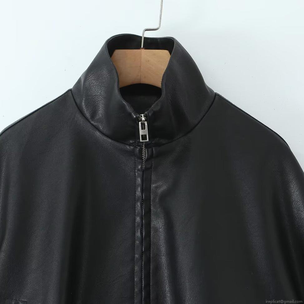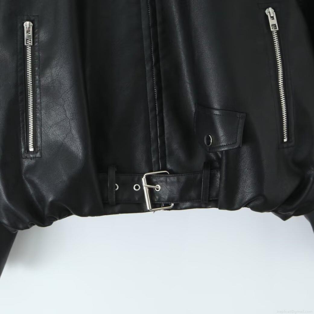 • Women's Fashion Faux Leather Biker Jacket Stand Collar Loose Short PU Coat With Waist Belt Zipper Pocket Streetwear Outwear For Women