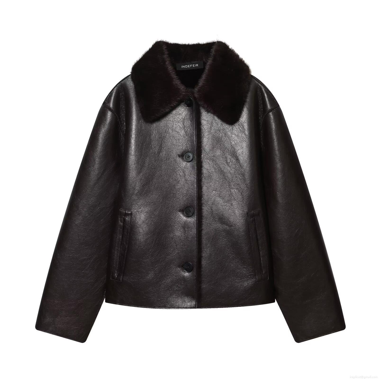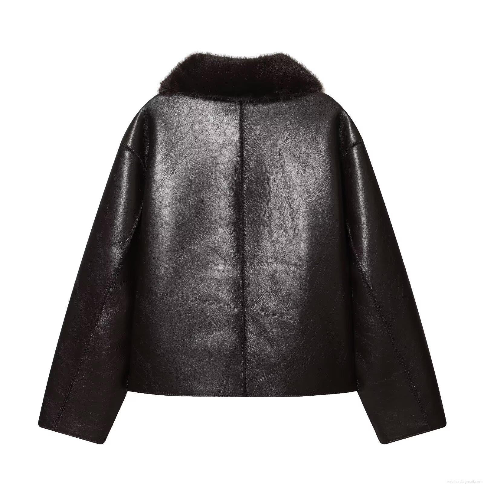 • Women's Fashion Faux Leather Jacket With Faux Fur Collar Double Sided Wear Warm Autumn Winter Polyester Biker Coat Streetwear Ladies Outerwear