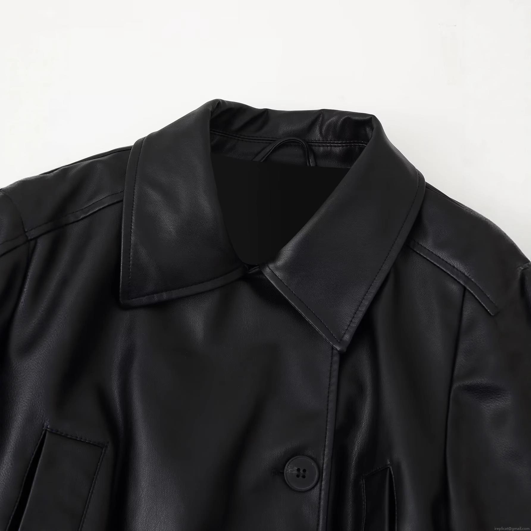 • Women's Fashion Faux Leather Short Windbreaker Jacket PU Leather Polyester Single Breasted Belted Lapel Long Sleeve Coat For Daily Casual Elegant Outerwear