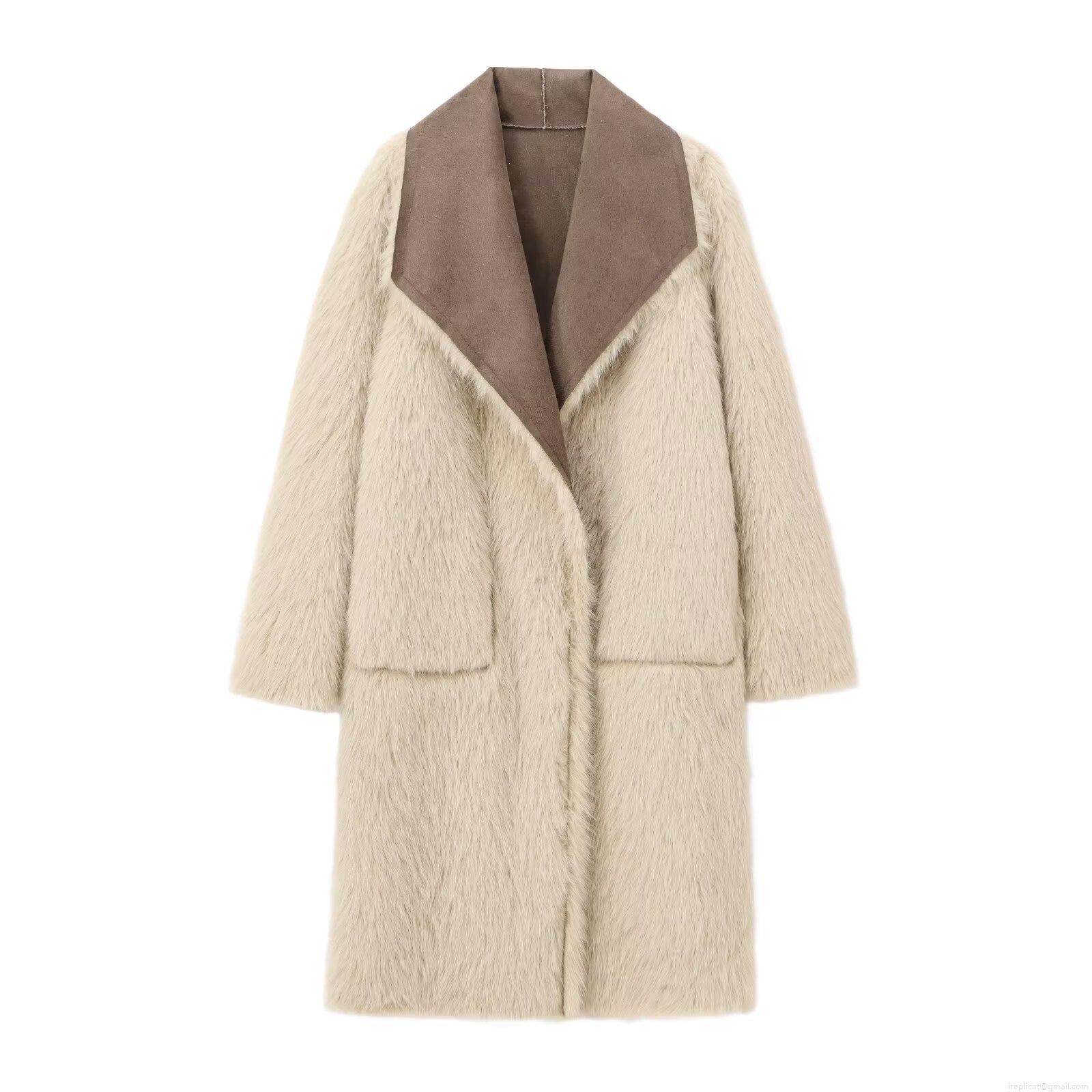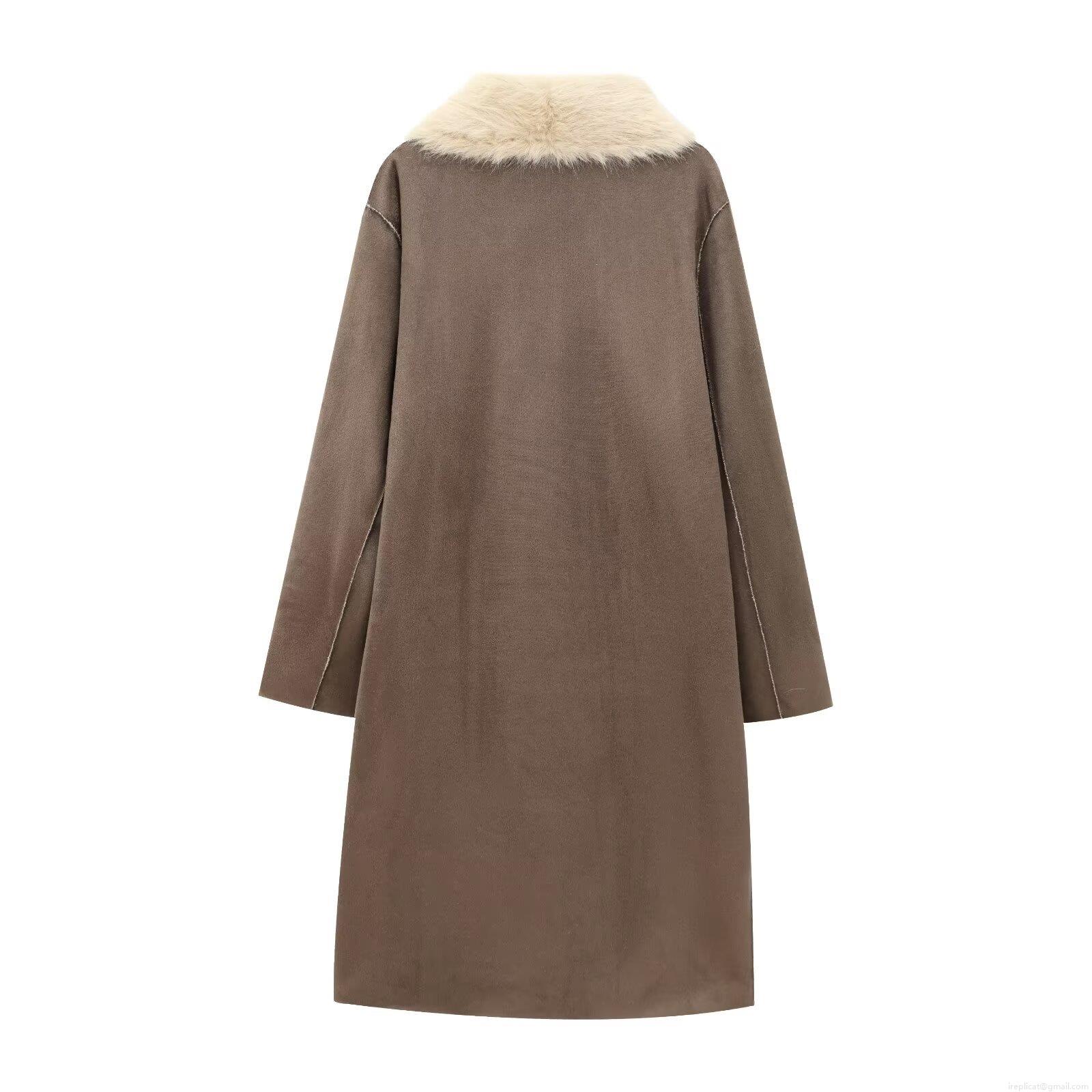 • Women's Fashion Faux Suede And Faux Fur Overcoat Long Sleeve Lapel Collar Double-Sided Wearable Long Winter Coat Warm Streetwear Style Outerwear
