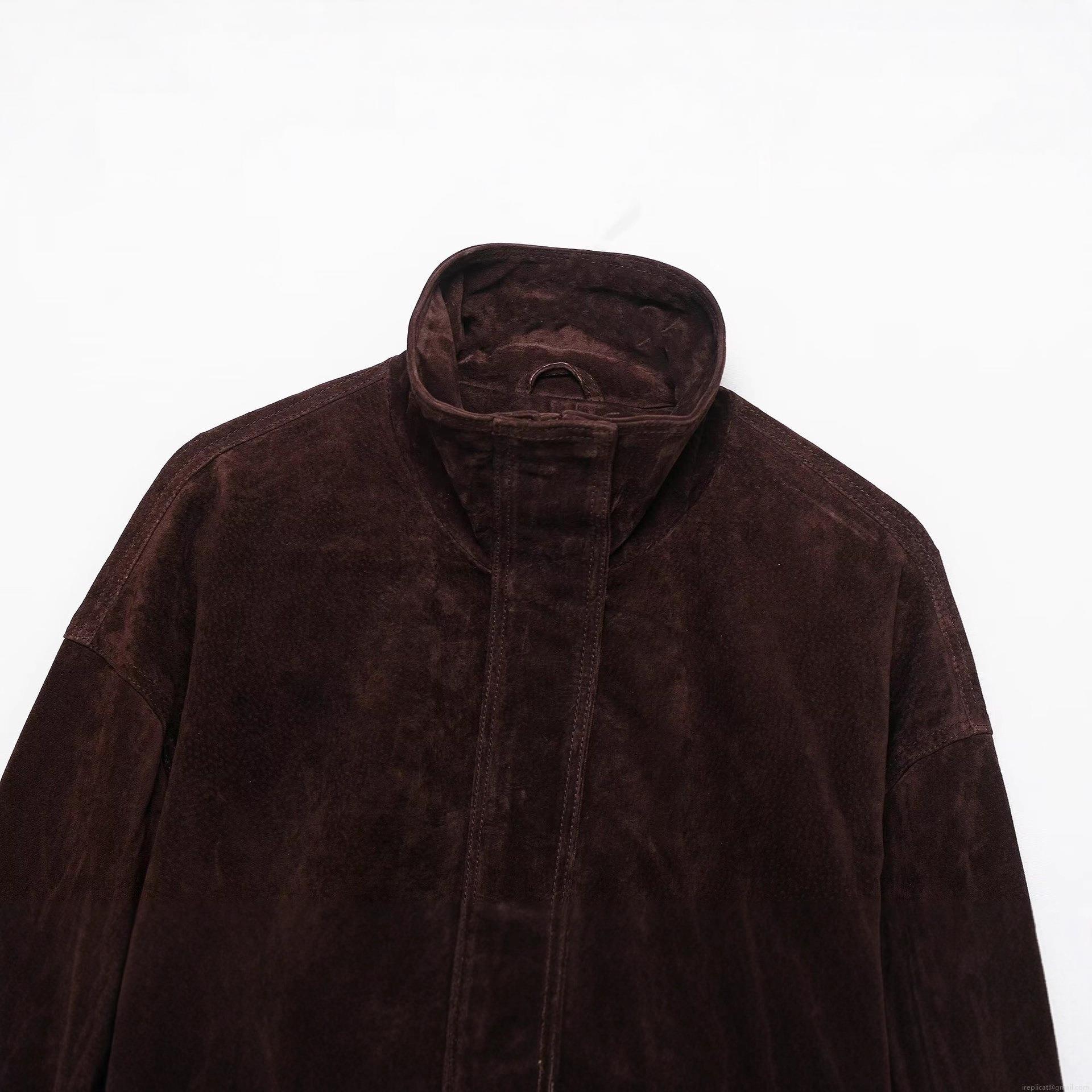 • Women's Fashion Faux Suede Baseball Jacket Solid Deep Brown Long Sleeve Stand Collar Bomber Jacket Loose Fit Outerwear Retro Streetwear For Autumn Winter