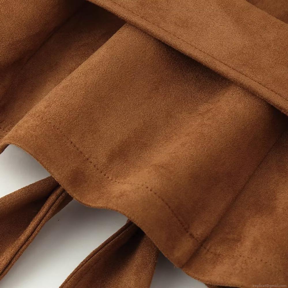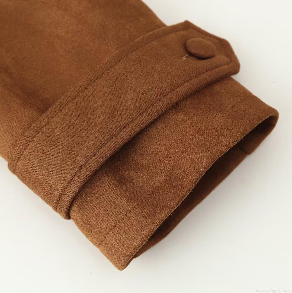 • Women's Fashion Faux Suede Belted Jacket Elegant Lapel Double Breasted Long Sleeve Short Coat Autumn Winter Casual Outwear