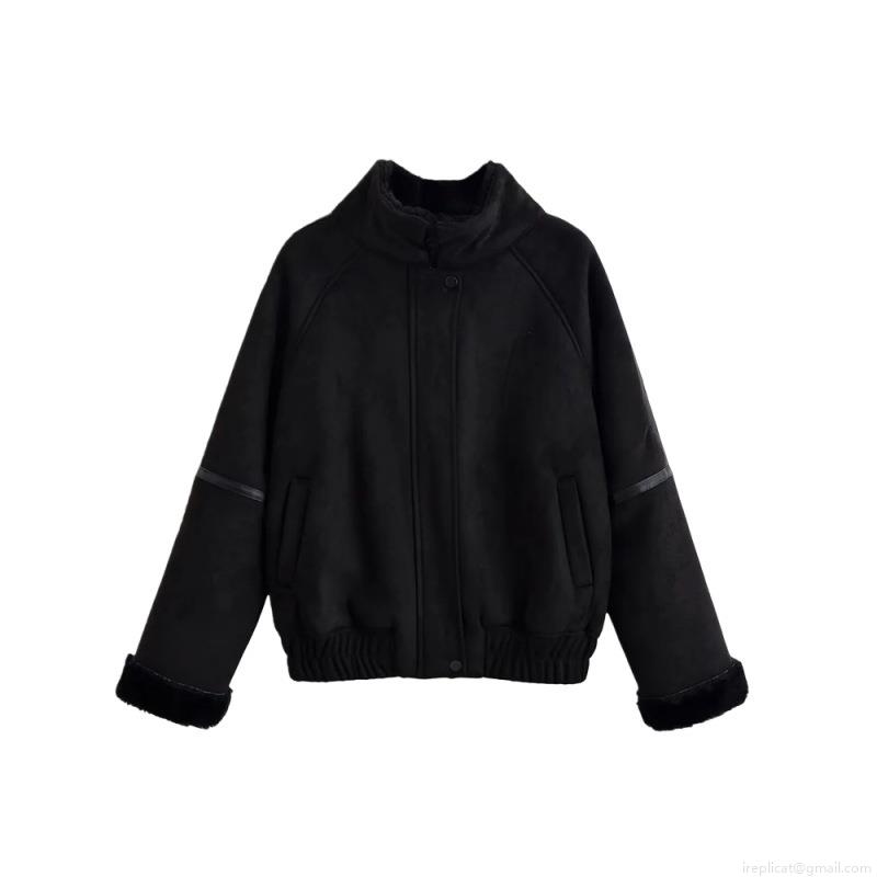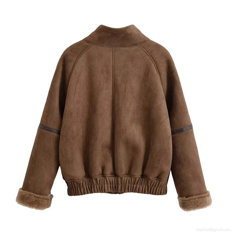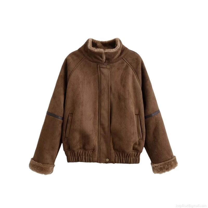• Women's Fashion Faux Suede Fur Bonded Jacket Thickened Warm Winter Coat Stand Collar Elastic Hem Casual Outerwear for Ladies