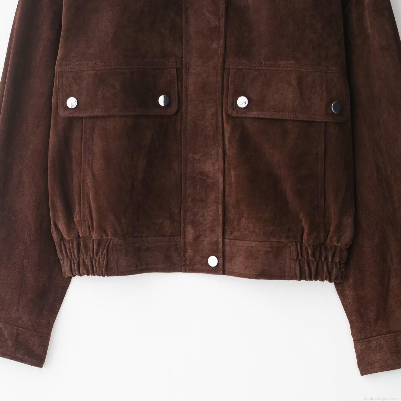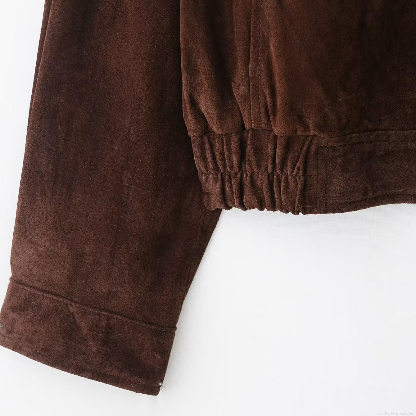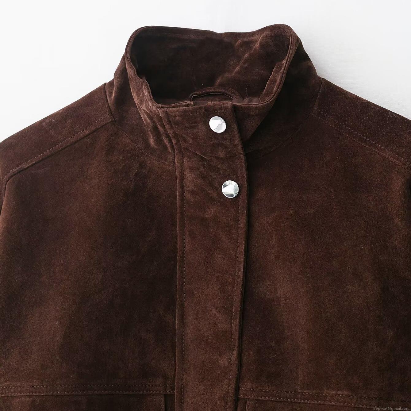 • Women's Fashion Faux Suede Jacket Casual Solid Color Stand Collar Loose Outerwear With Flap Pockets Fall Winter Long Sleeve Coat With Elastic Hem