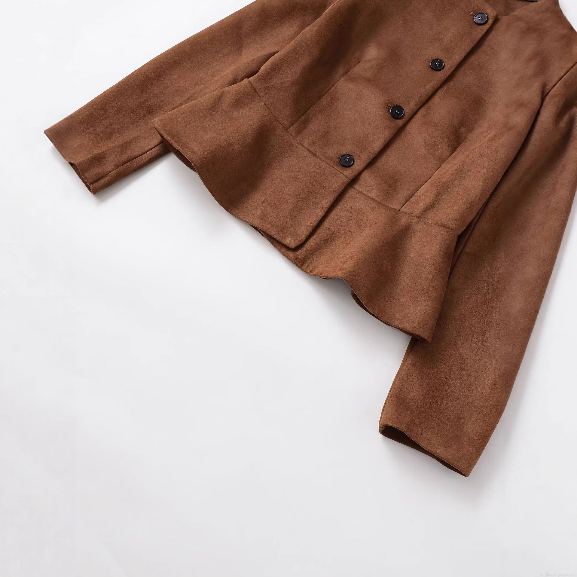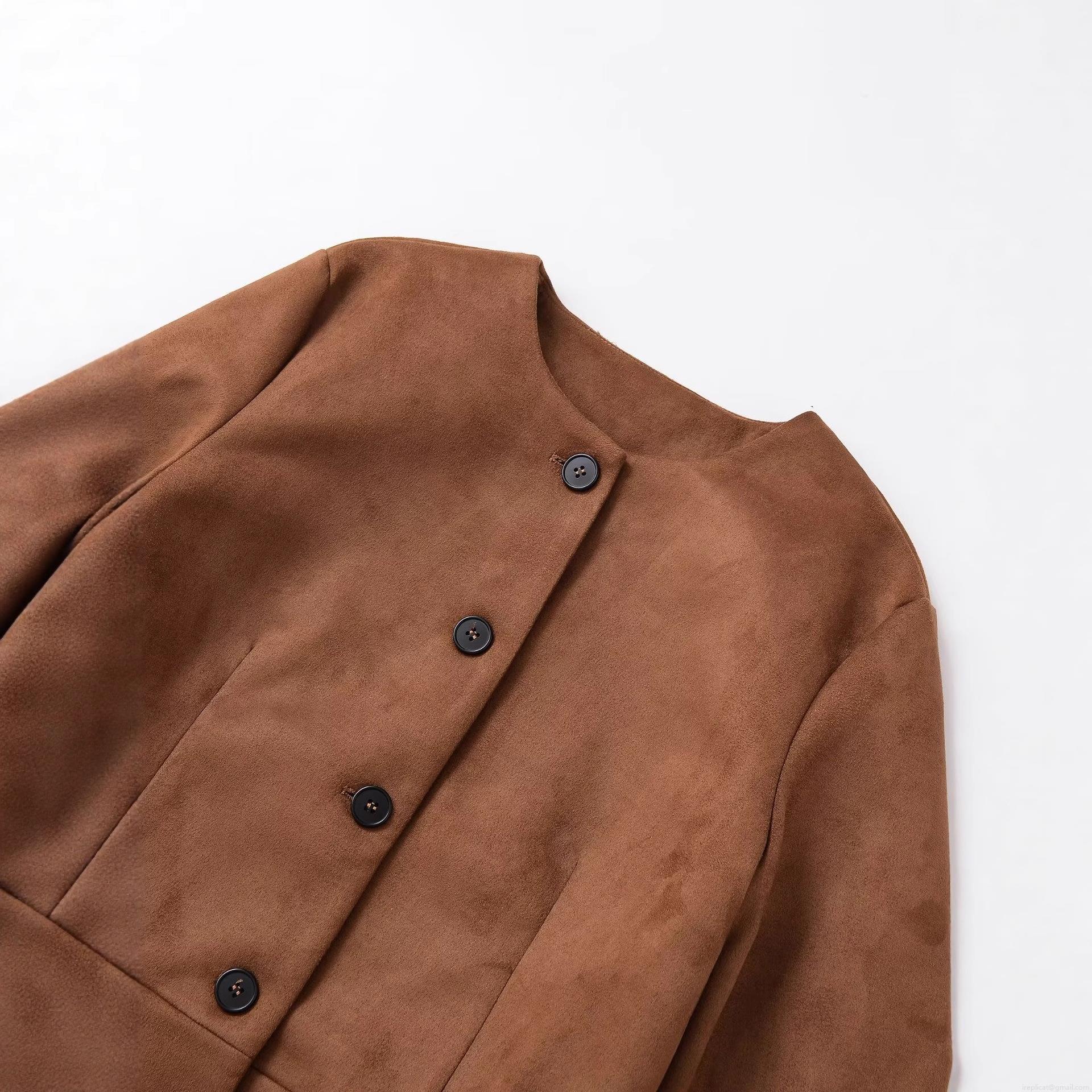 • Women's Fashion Faux Suede Jacket Solid Color Round Neck Single Breasted Short Coat Streetwear Casual Outwear For Autumn Winter