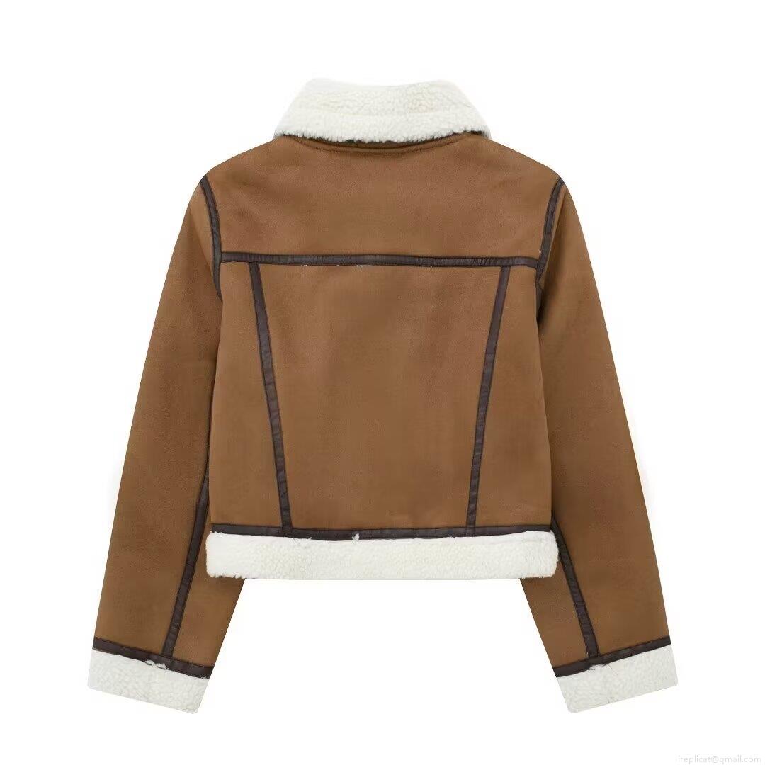 Women's Fashion Faux Suede Lambswool Biker Jacket Short Warm Autumn Winter Outerwear Streetwear Zip Up Coat For Women