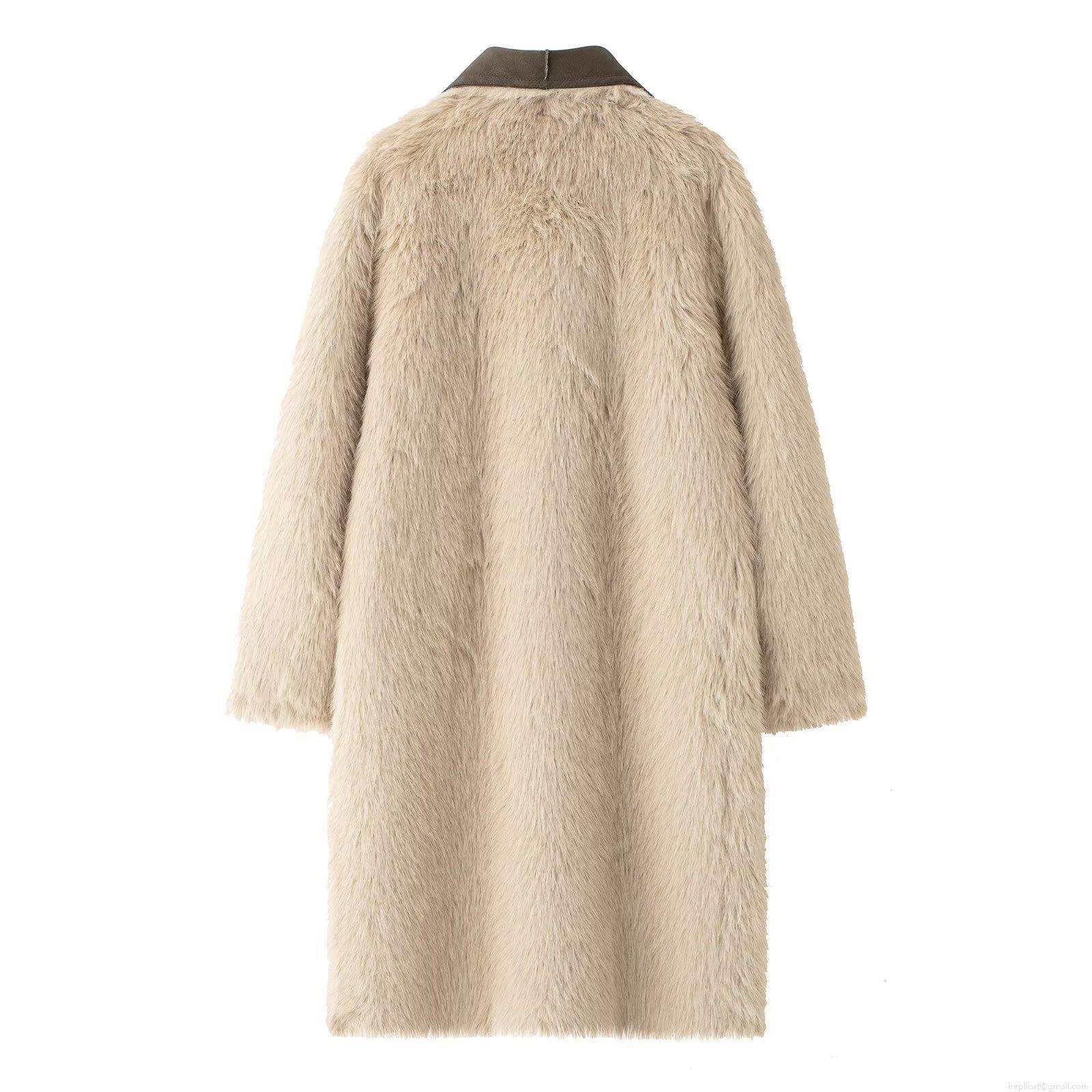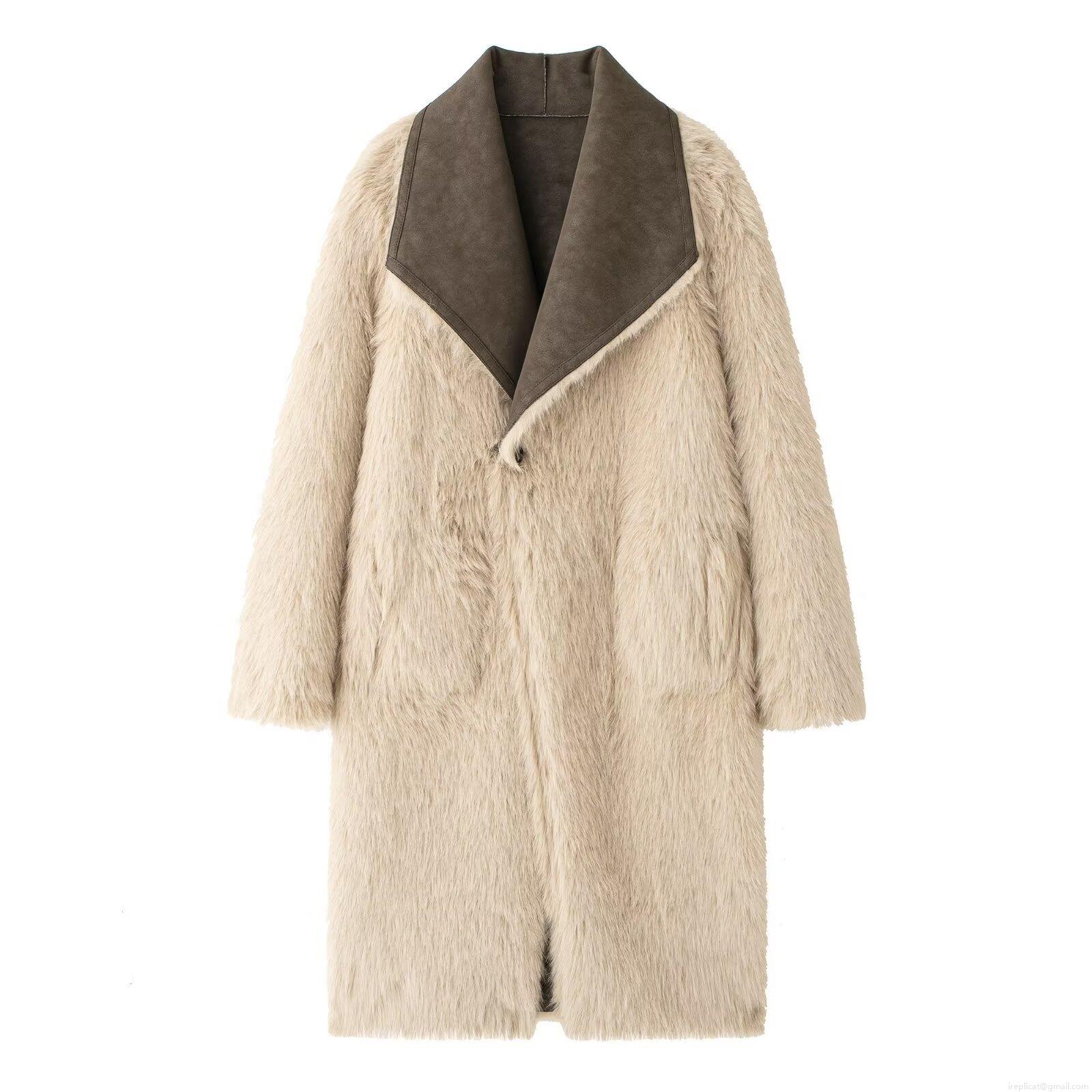 • Women's Fashion Faux Suede Long Coat With Faux Fur Collar Thick Warm Winter Outwear Streetwear Jacket For Women Elegant Long Trench Coat