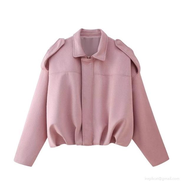 • Women's Fashion Faux Suede Pilot Jacket Casual Lapel Short Coat Zip Up Long Sleeve Outerwear With Shoulder Straps For Lady