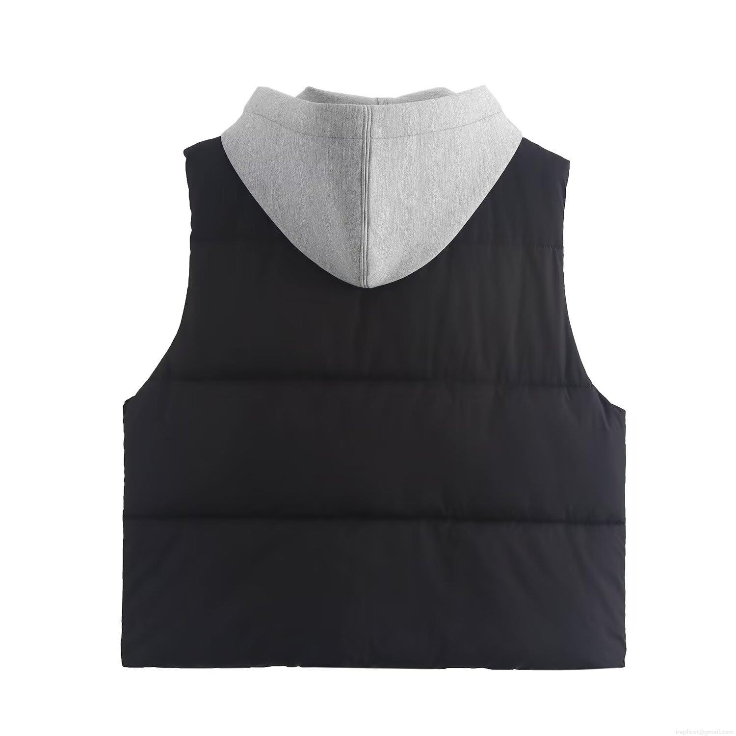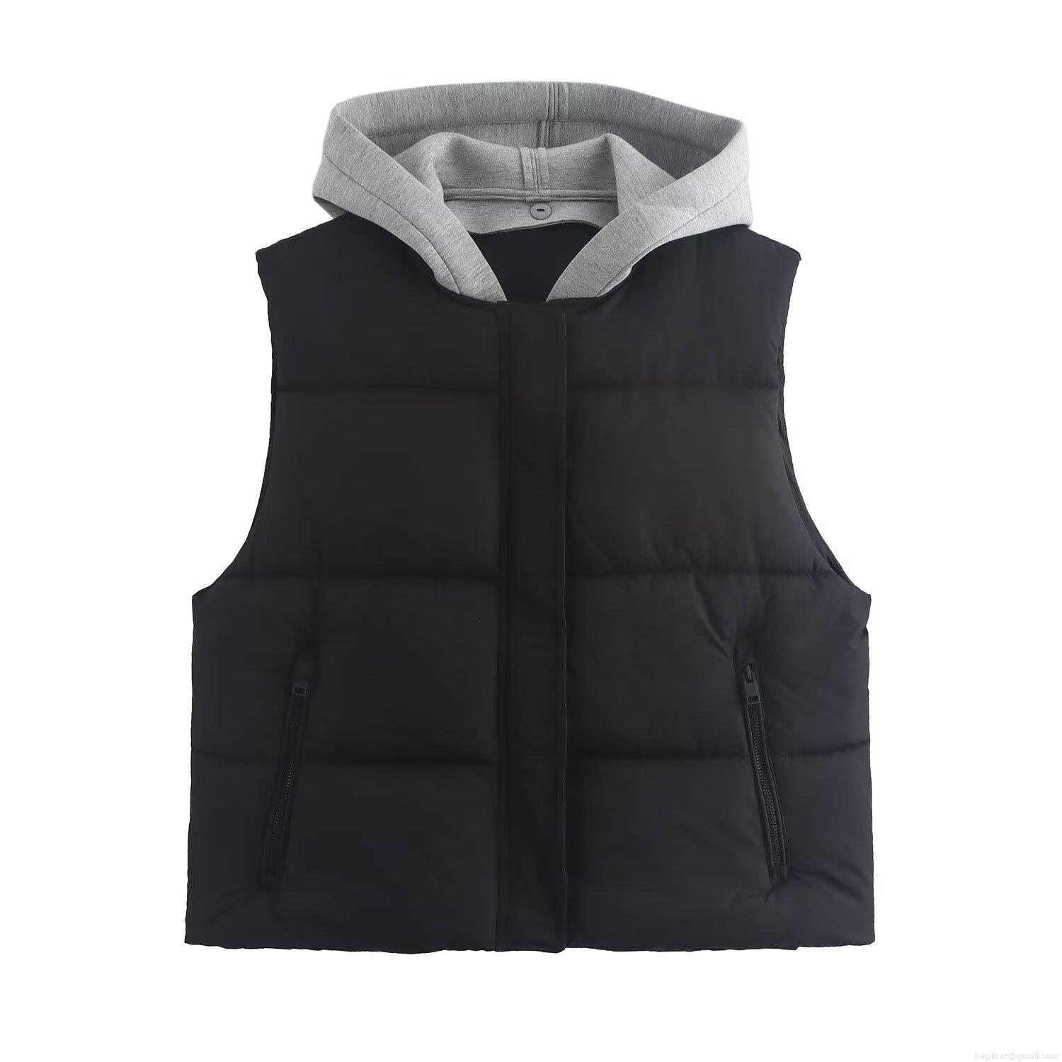 Women's Fashion Hooded Quilted Vest Sleeveless Patchwork Padded Gilet With Zipper Pockets Casual Streetwear Autumn Winter Outerwear Jacket