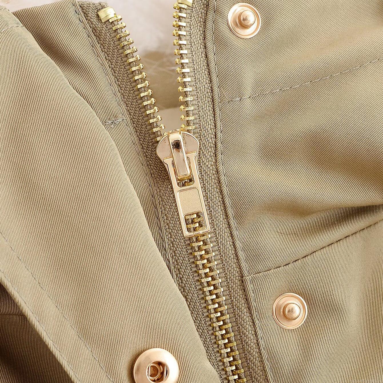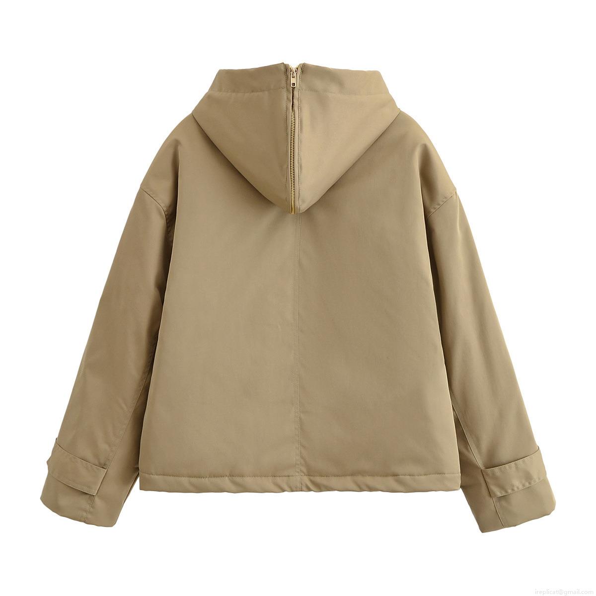 • Women's Fashion Khaki Hooded Padded Jacket 100% Polyester Windproof Zip-Up Outerwear Loose Fit Long Sleeve Puffer Coat For Autumn Winter Streetwear