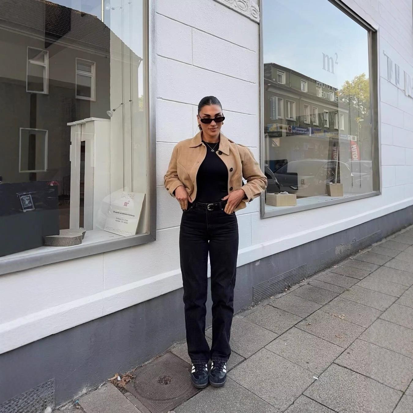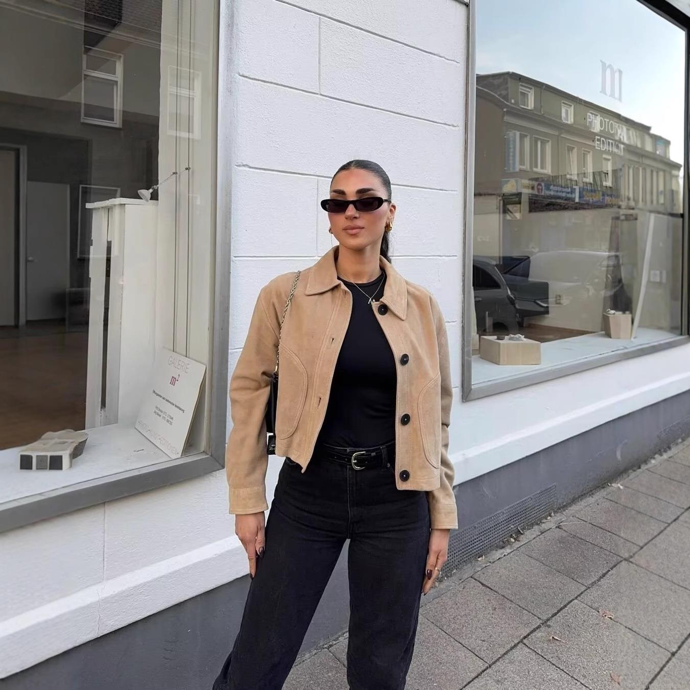 • Women's Fashion Lapel Faux Suede Short Jacket Coat Solid Color Single Breasted Streetwear Outerwear For Autumn Winter Casual Daily Wear