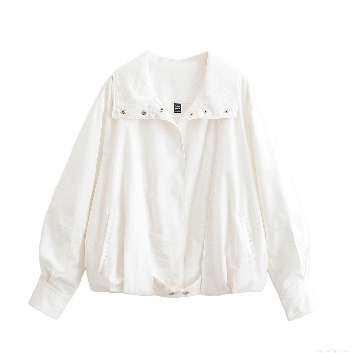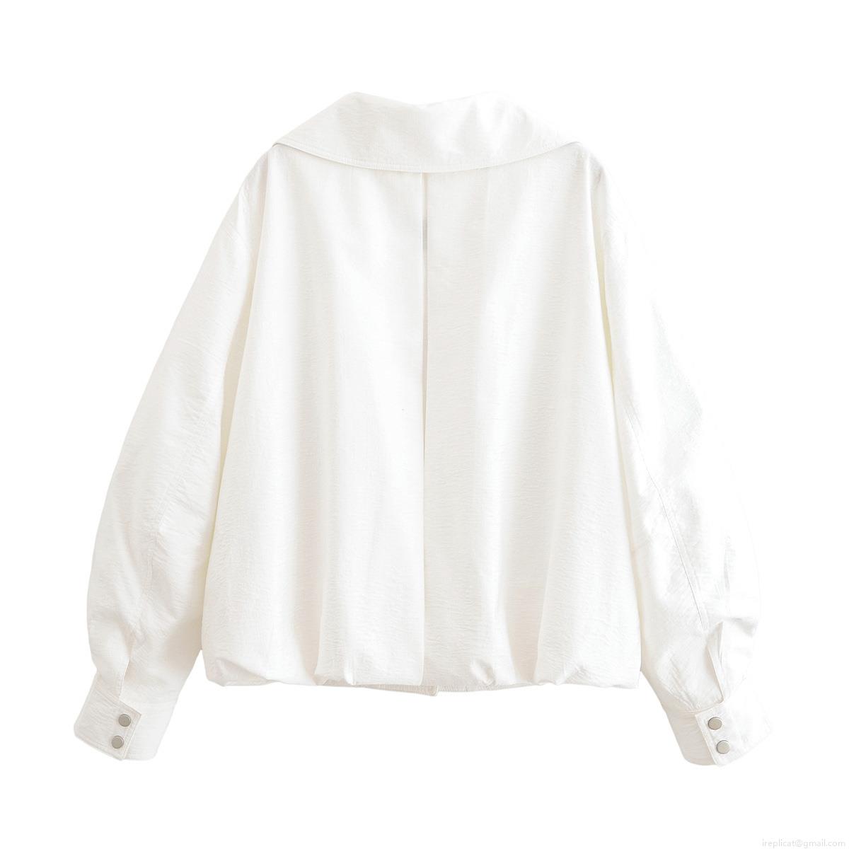 • Women's Fashion Lapel Long Sleeve Button Down Jacket Lightweight 100% Polyester Solid Color Streetwear Outerwear For Autumn Daily Wear