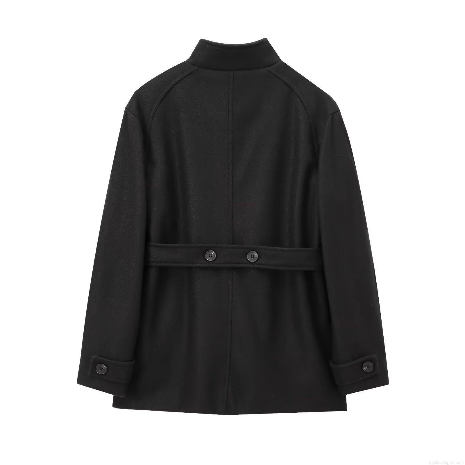 • Women's Fashion Lapel Woolen Overcoat Winter Mid-length Solid Color Trench Coat With Belt Polyester Blend Long Sleeve Warm Jacket Outerwear For Ladies
