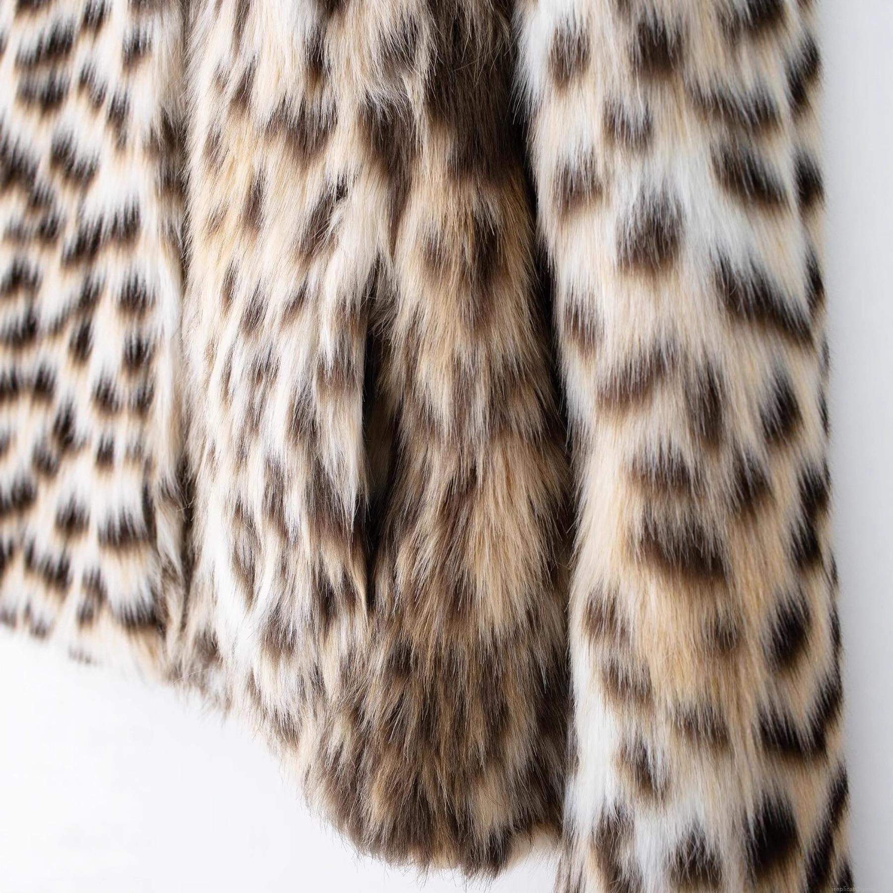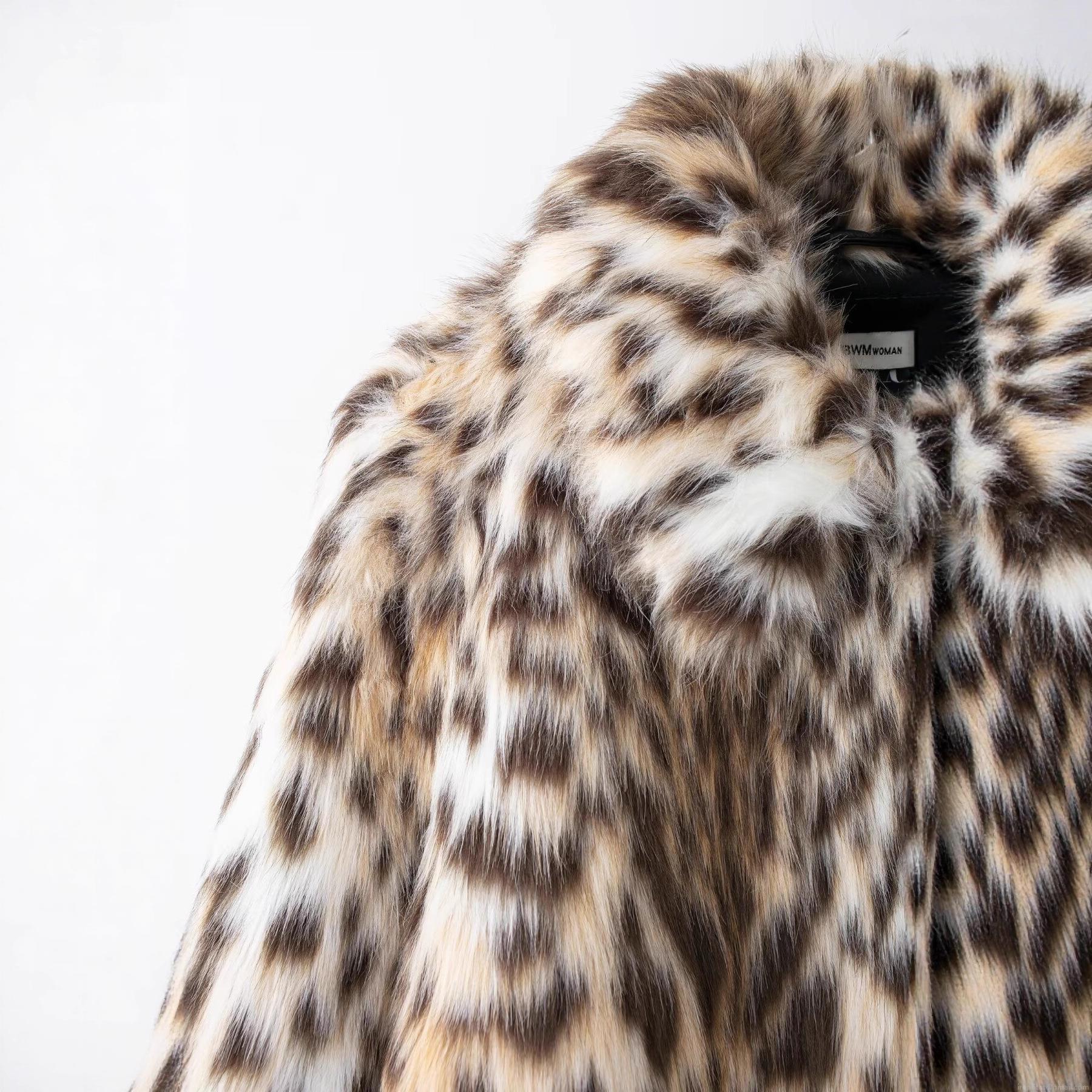 • Women's Fashion Leopard Print Faux Fur Jacket Streetwear 100% Polyester Lapel Long Sleeve Winter Warm Coat With Pockets For Women