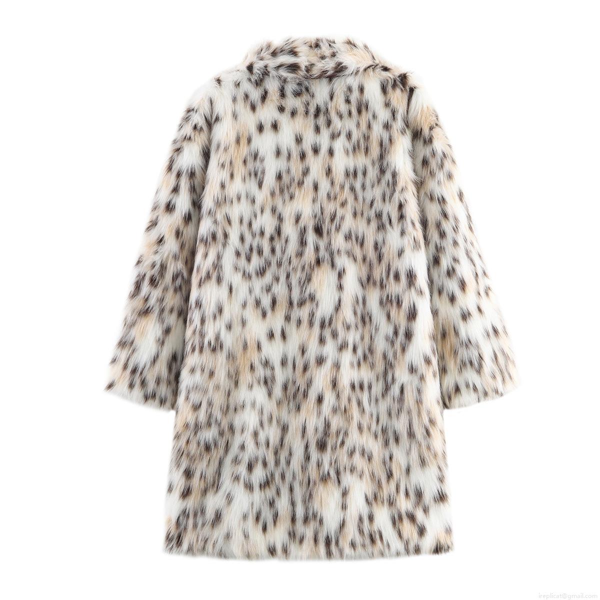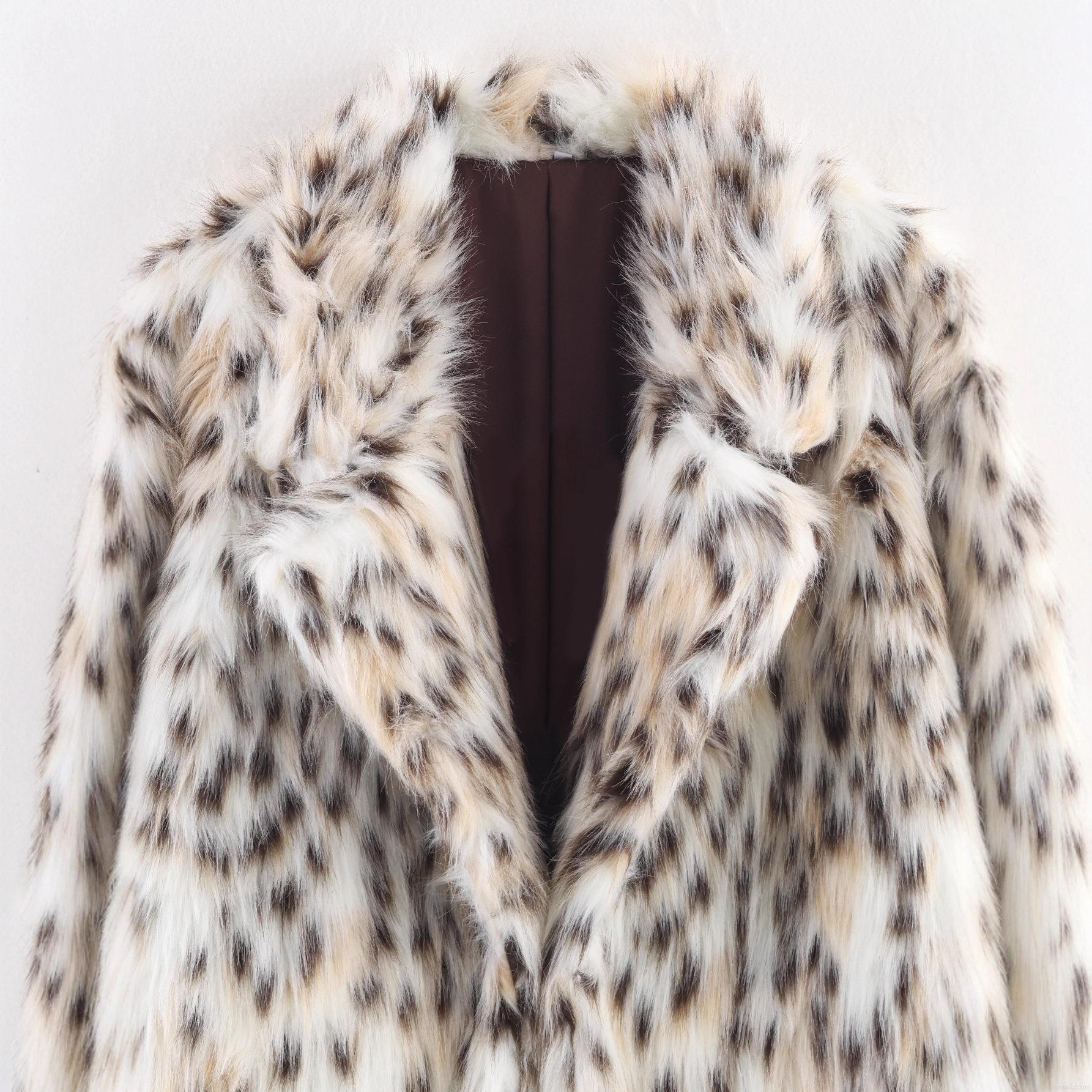• Women's Fashion Leopard Print Faux Fur Mid-Length Coat Elegant Lapel Long Plush Jacket Warm Winter Autumn Outerwear For Casual Party Ladies Open Front Cardigan Jacket