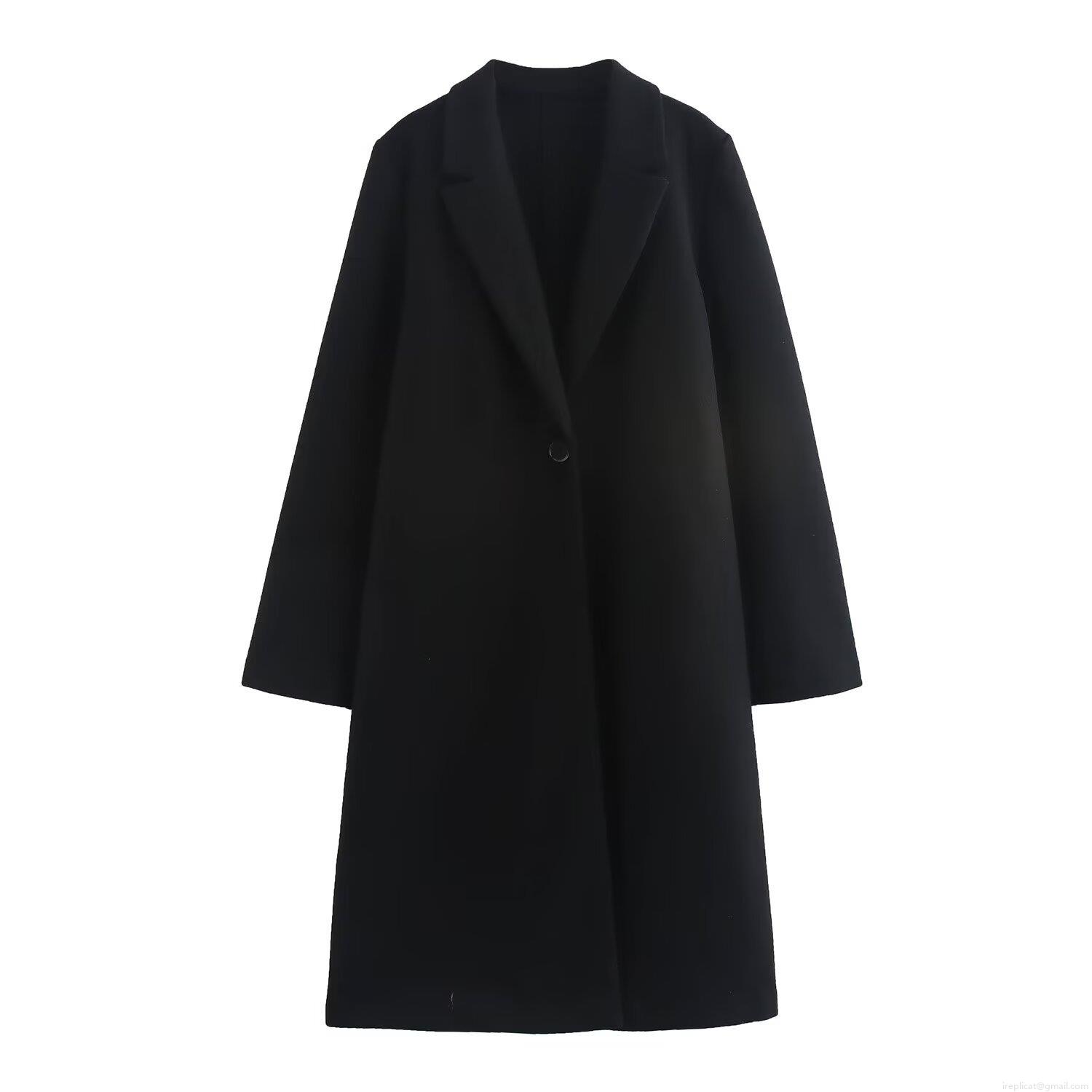 • Women's Fashion Long Woolen Coat Notched Lapel Single Breasted Soft Polyester Outerwear Warm Solid Color Jacket For Autumn Winter Office Daily Wear