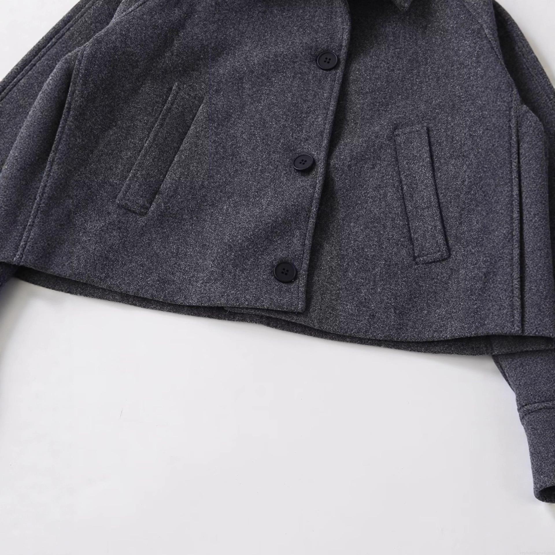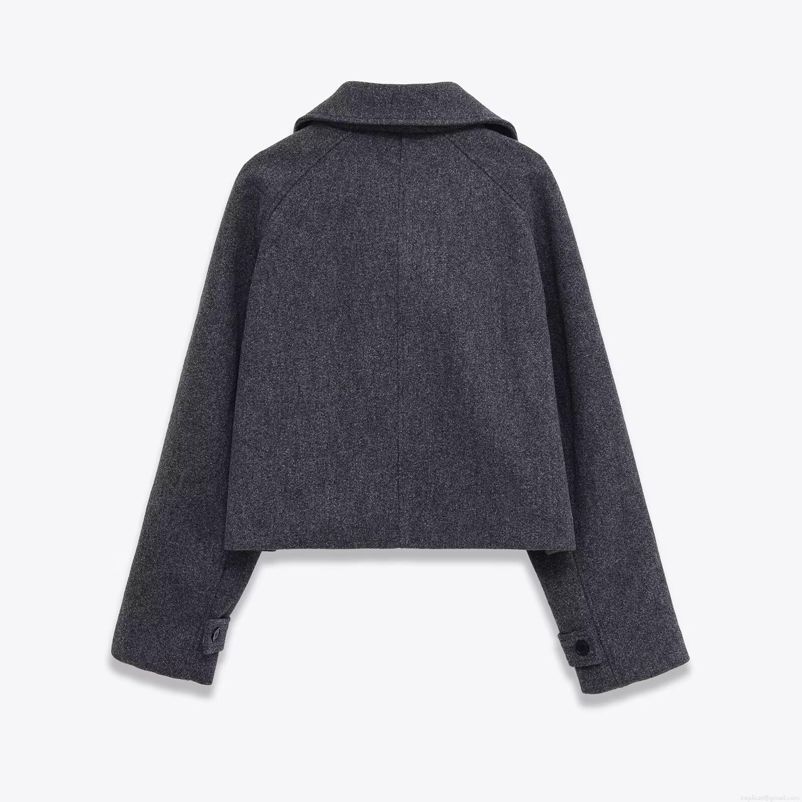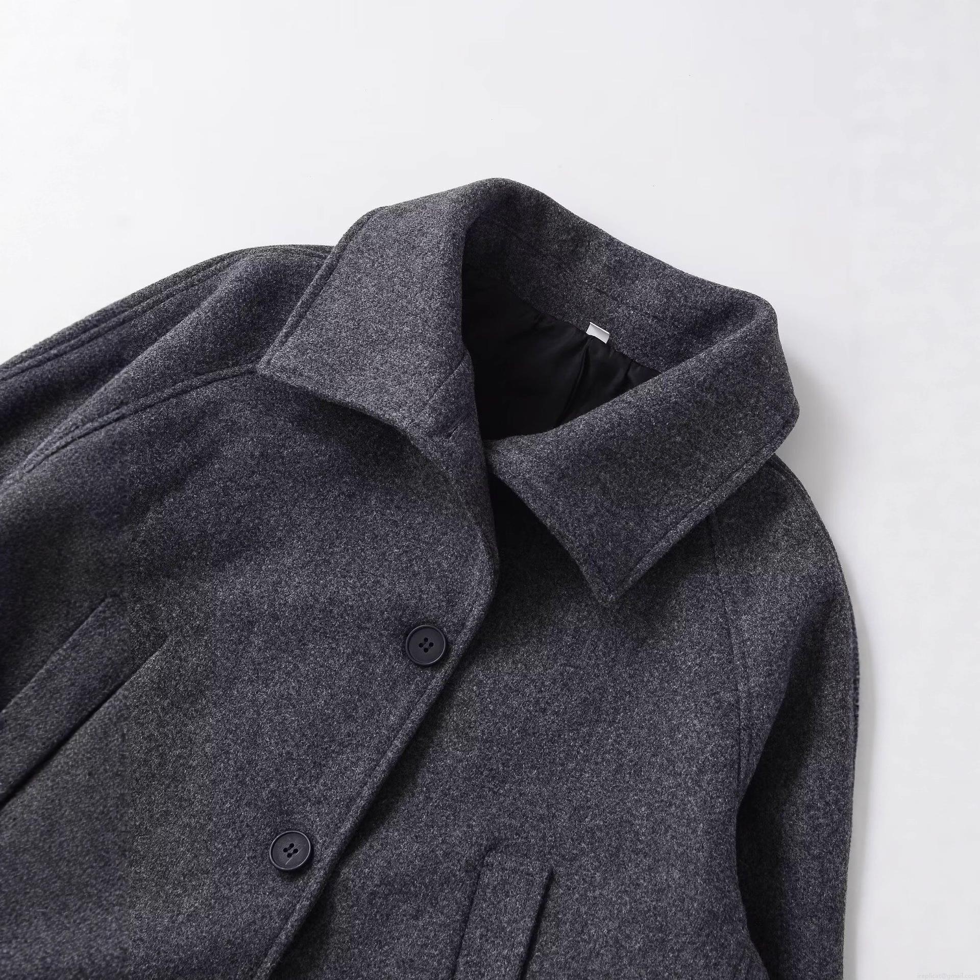 • Women's Fashion Melange Grey Lapel Woolen Coat Loose Single Breasted Long Sleeve Short Jacket With Cuff Straps Streetwear Autumn Winter Outerwear