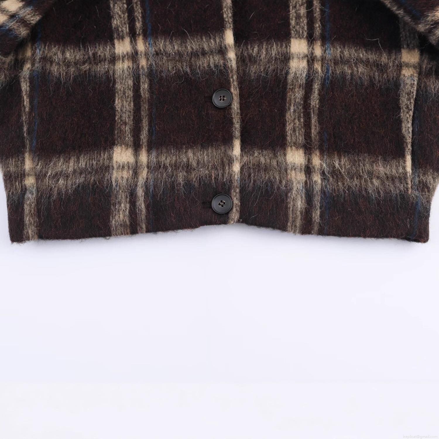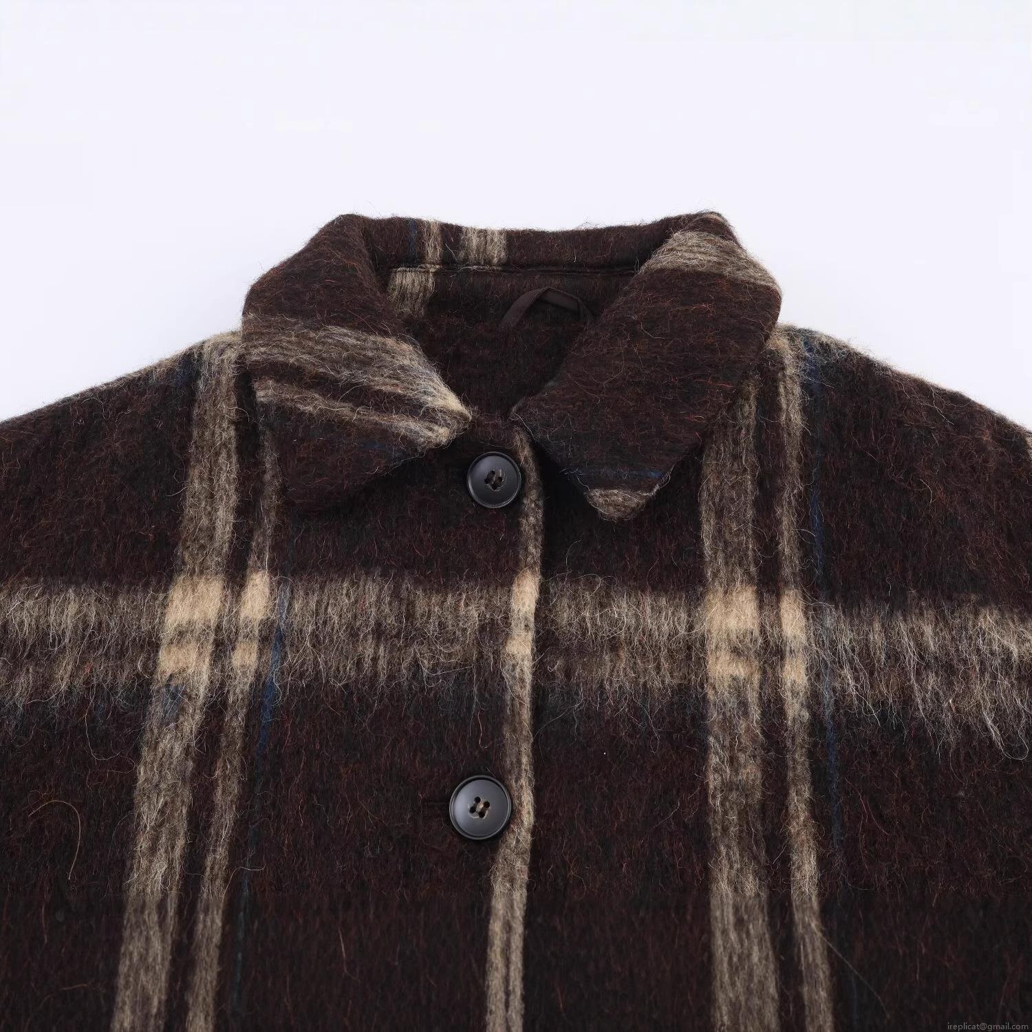 • Women's Fashion Plaid Jacket Long Sleeve Lapel Single Breasted Loose Woolen Feel Checked Coat Casual Streetwear For Autumn Winter