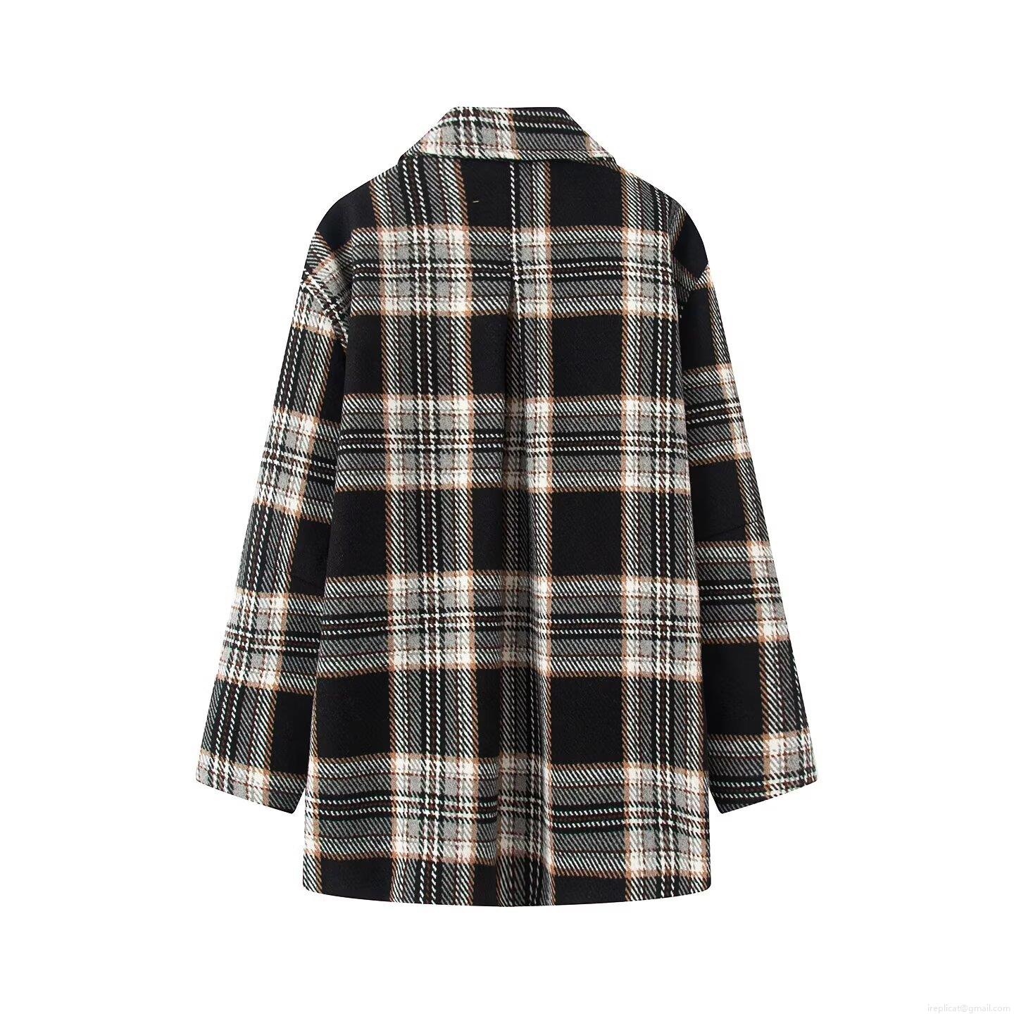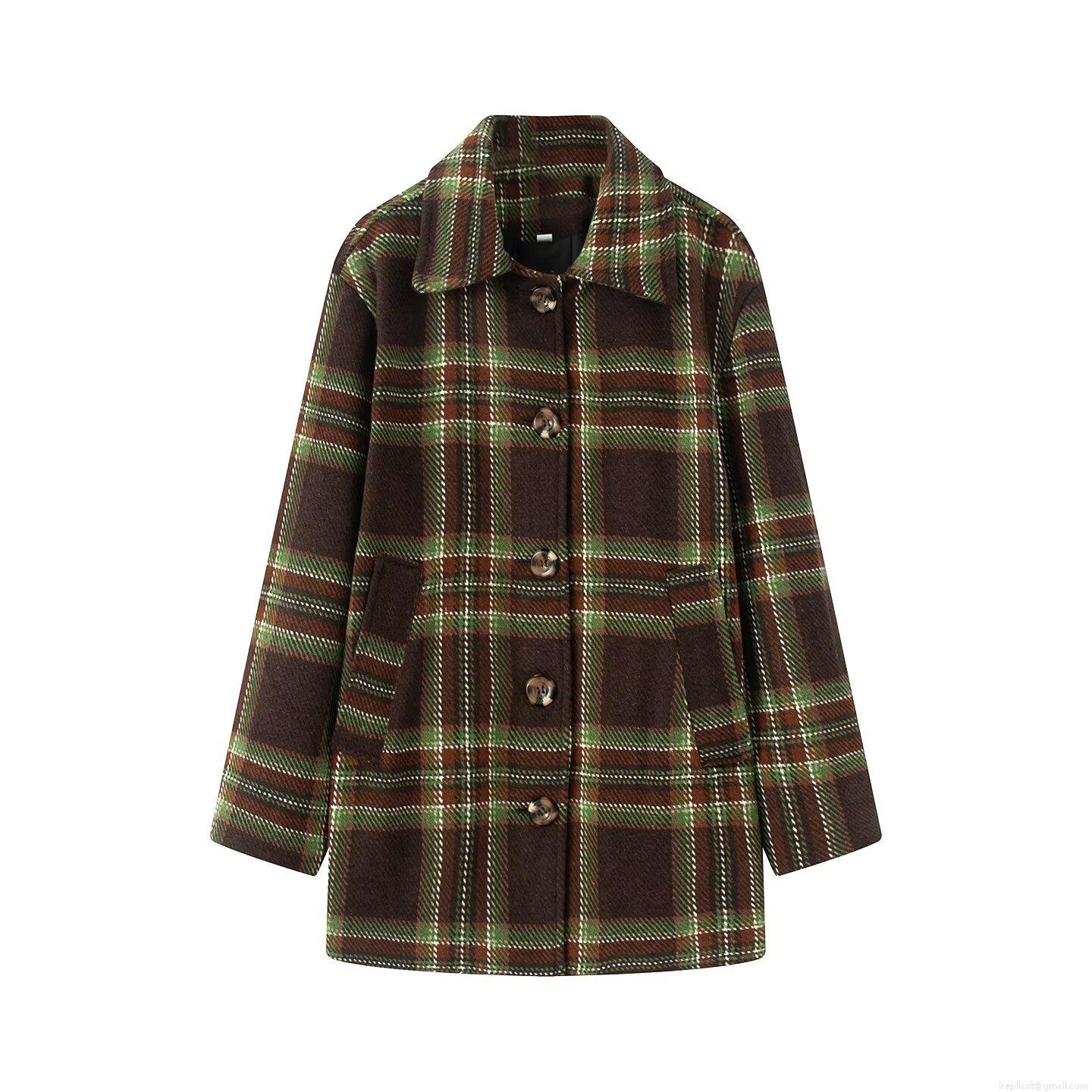 • Women's Fashion Plaid Woolen Coat Oversized Casual Lapel Long Sleeve Jacket Outerwear for Autumn Winter Daily Wear Warm Single Breasted Button Down Mid Length Cardigan
