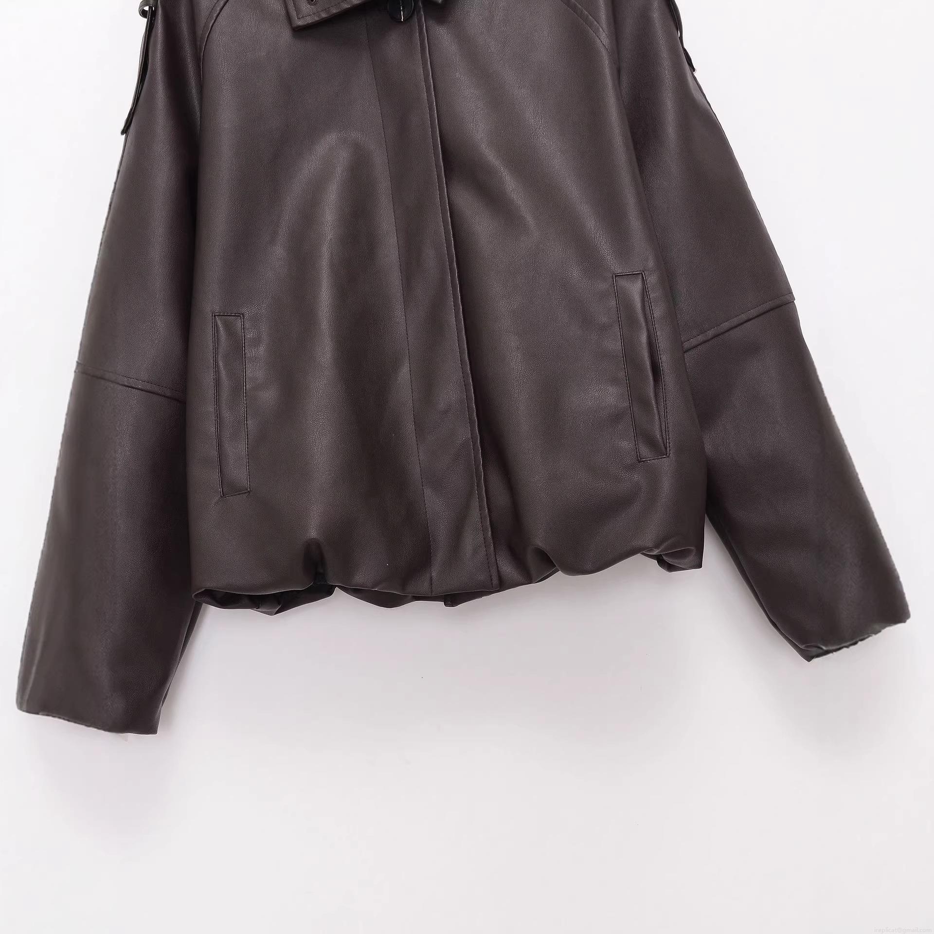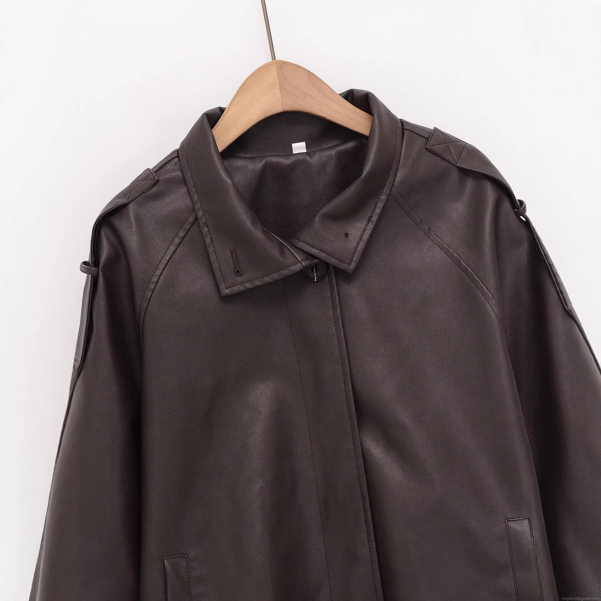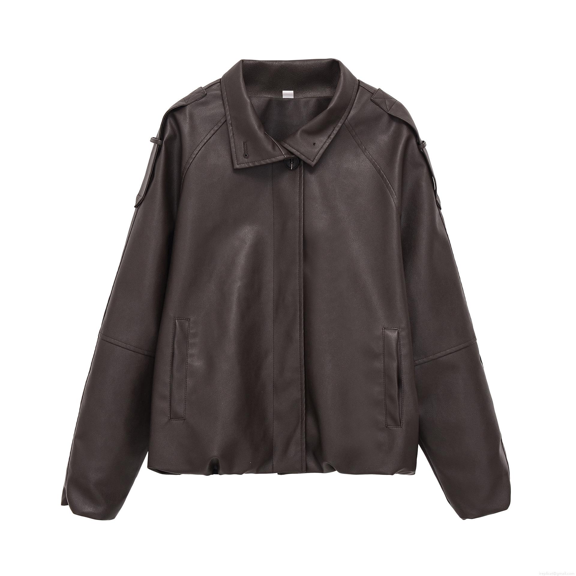 • Women's Fashion PU Leather Jacket Loose Casual Short Moto Biker Coat With Turn-down Collar And Zipper Closure Solid Color Faux Leather Outwear With Polyester Lining For Women