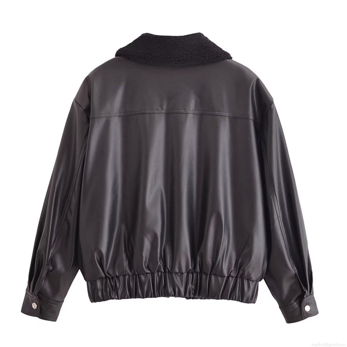 • Women's Fashion PU Leather Jacket With Faux Lamb Wool Collar Autumn Winter Warm Moto Biker Coat Streetwear Outerwear For Women