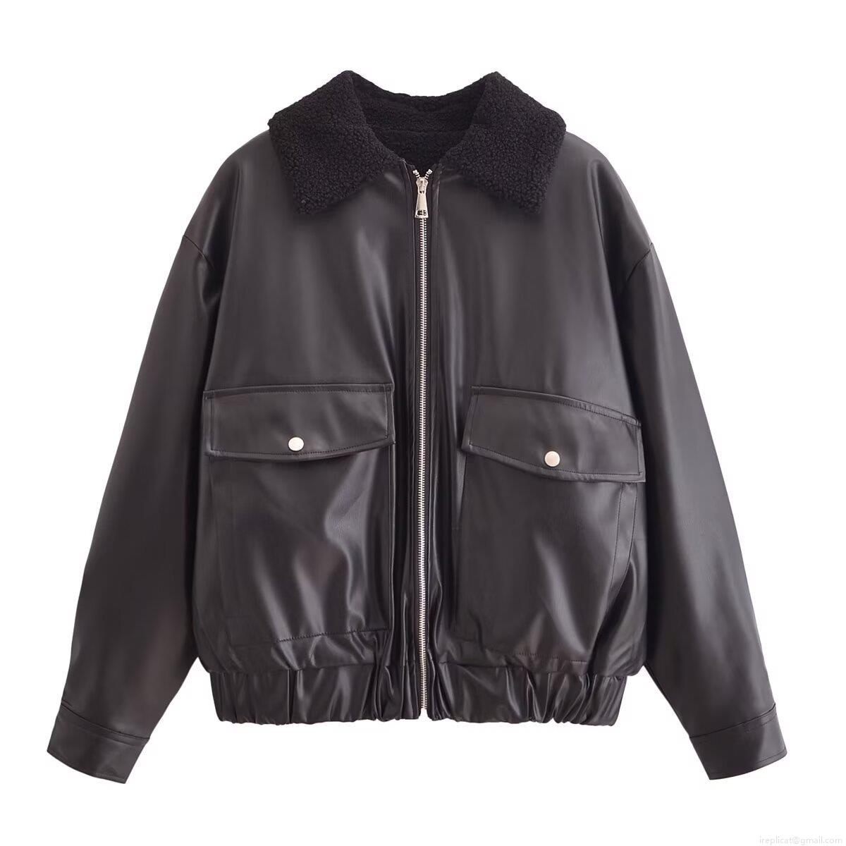 Women's Fashion PU Leather Jacket With Faux Lamb Wool Collar Autumn Winter Warm Moto Biker Coat Streetwear Outerwear For Women