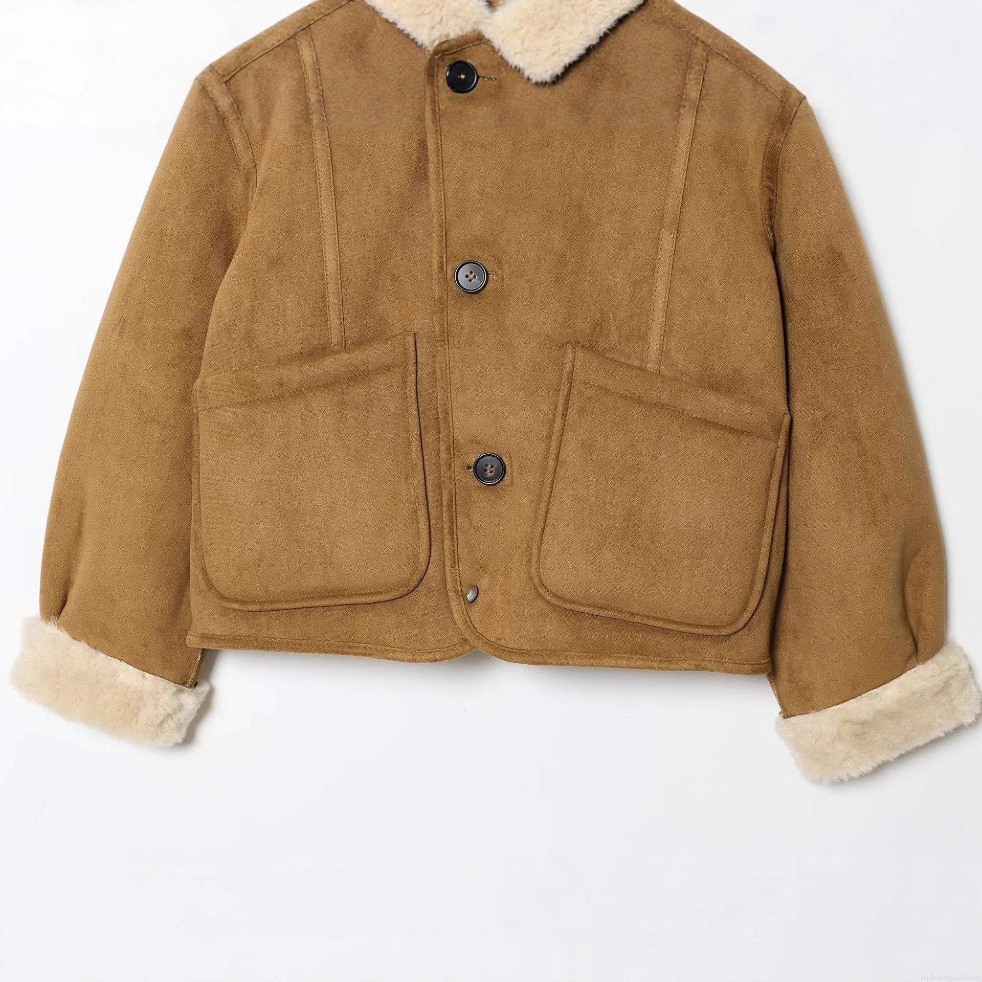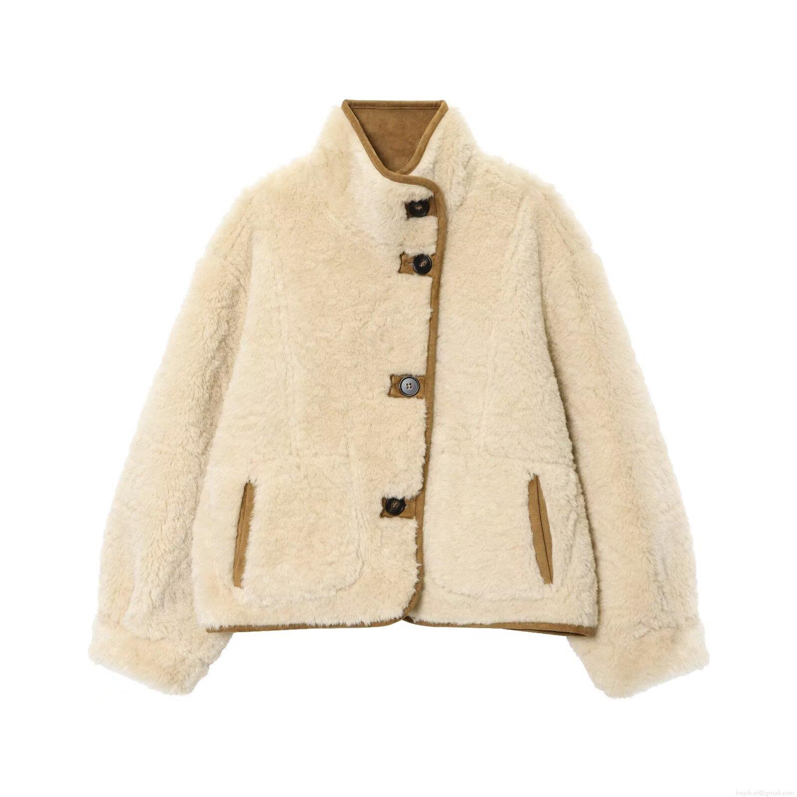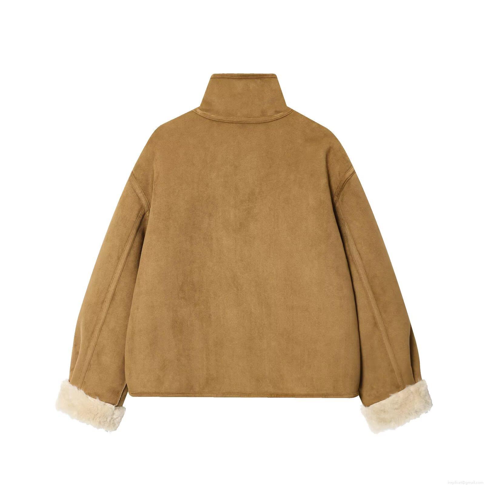 • Women's Fashion Reversible Faux Suede Shearling Jacket Stand Collar Single Breasted Warm Fleece Outerwear Loose Short Coat For Autumn Winter Daily Wear