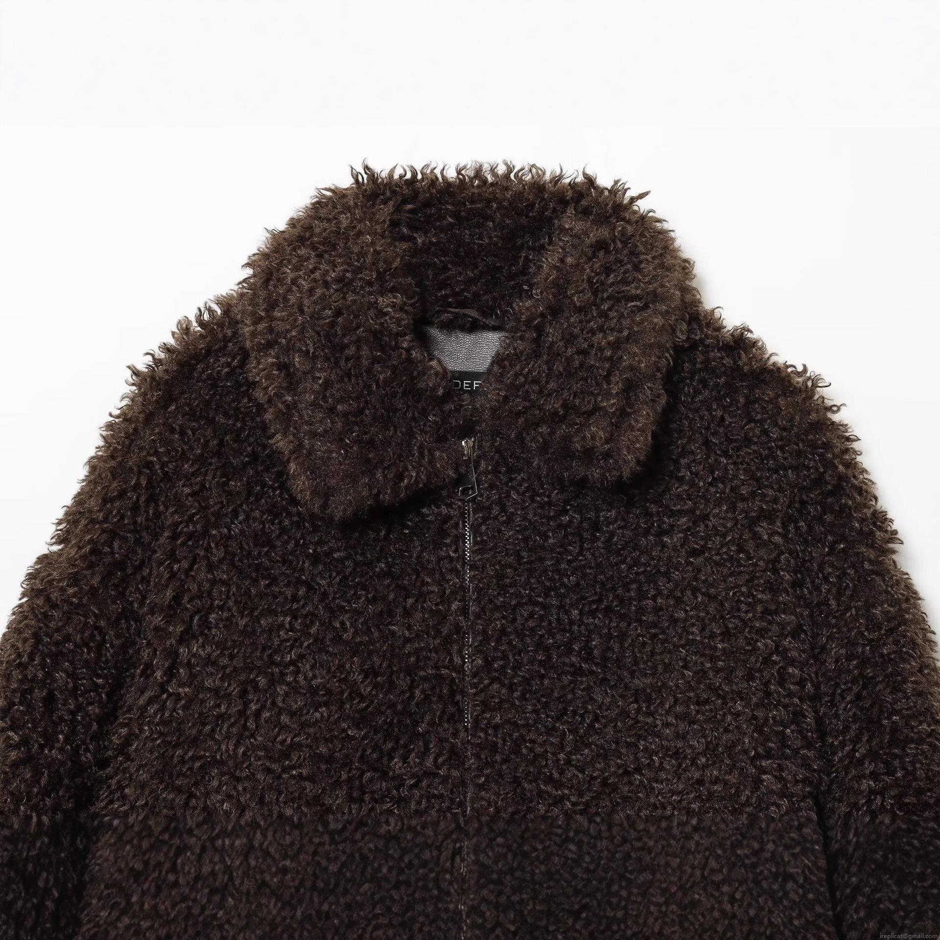 • Women's Fashion Sherpa Fleece Jacket Thick Warm Solid Color Lapel Zipper Up Baseball Outerwear Streetwear Casual Long Sleeve Coat for Women Autumn Winter