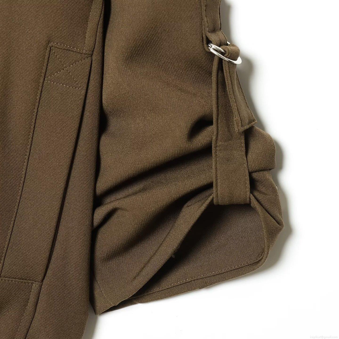 Solid Color, Shoulder Epaulettes, Metal Buckle, Rolled Sleeves, Tapered Hem