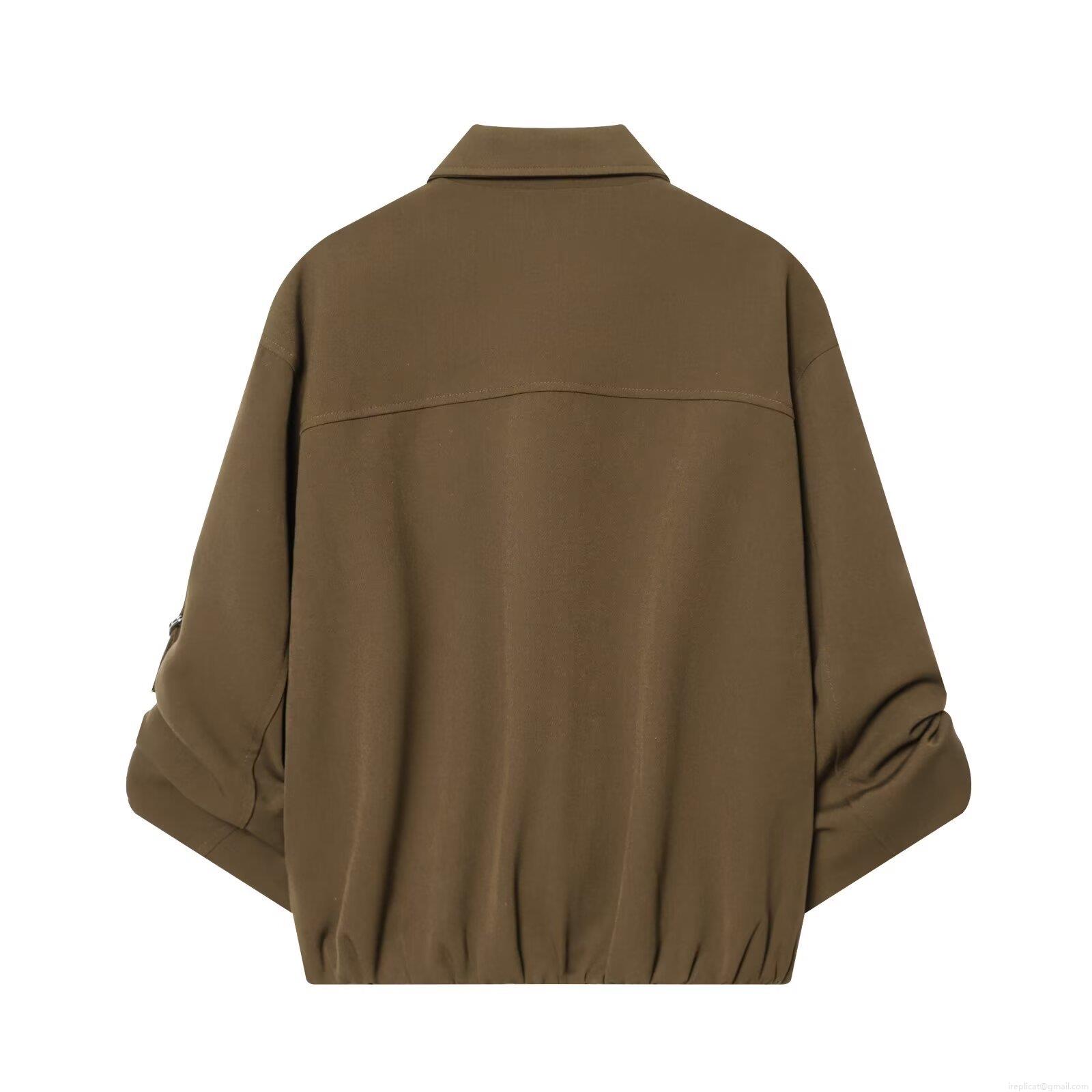 • Women's Fashion Short Bomber Jacket Solid Color Casual Workwear Coat With Metal Ring Epaulettes Twill Polyester Outerwear For Spring Winter