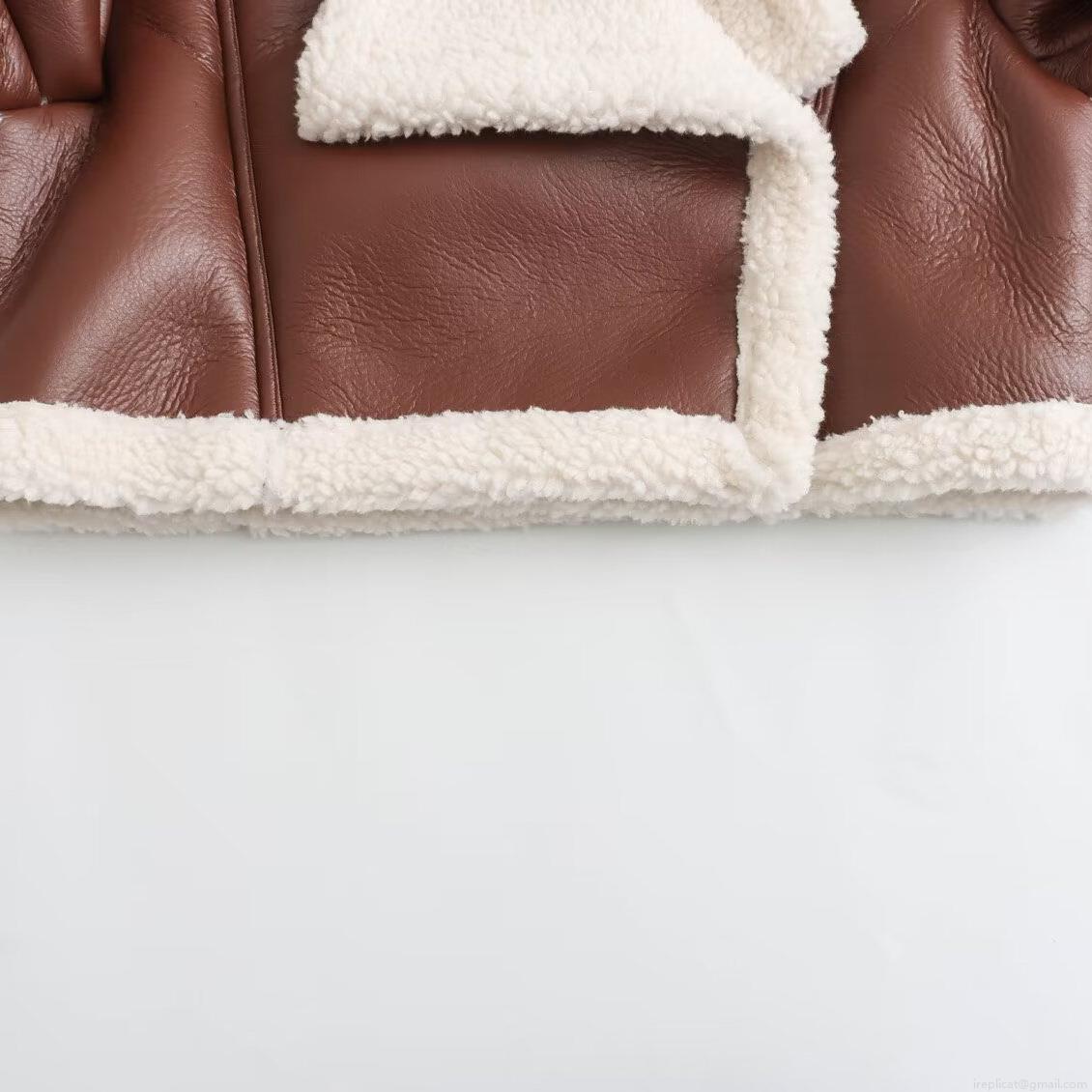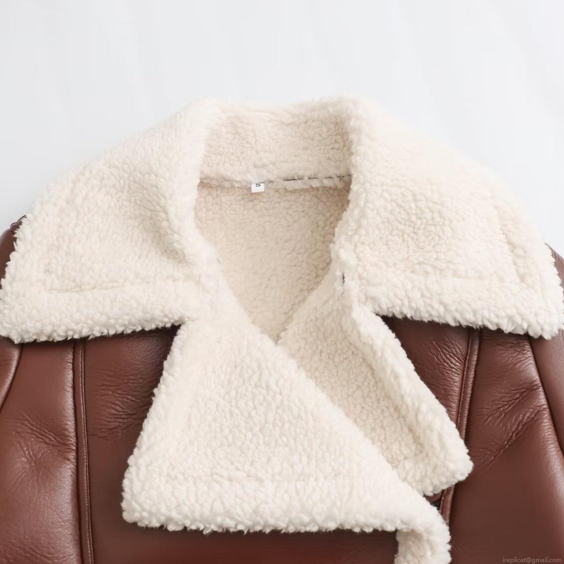 • Women's Fashion Short Faux Leather Aviator Jacket With Lamb Wool Lining Sherpa Trim Long Sleeve Biker Coat Winter Warm PU Leather Moto Outerwear