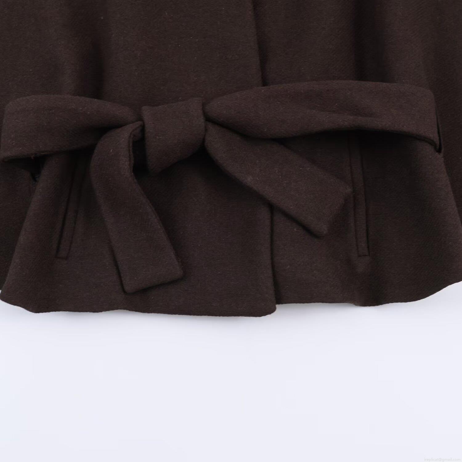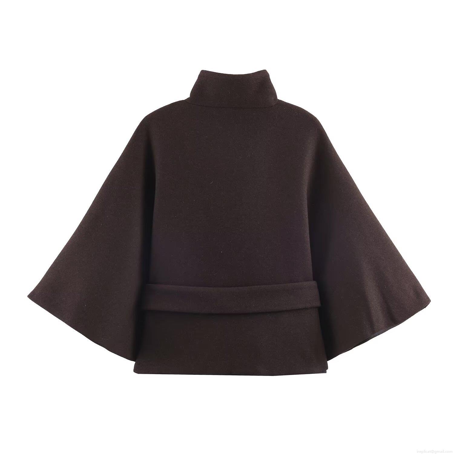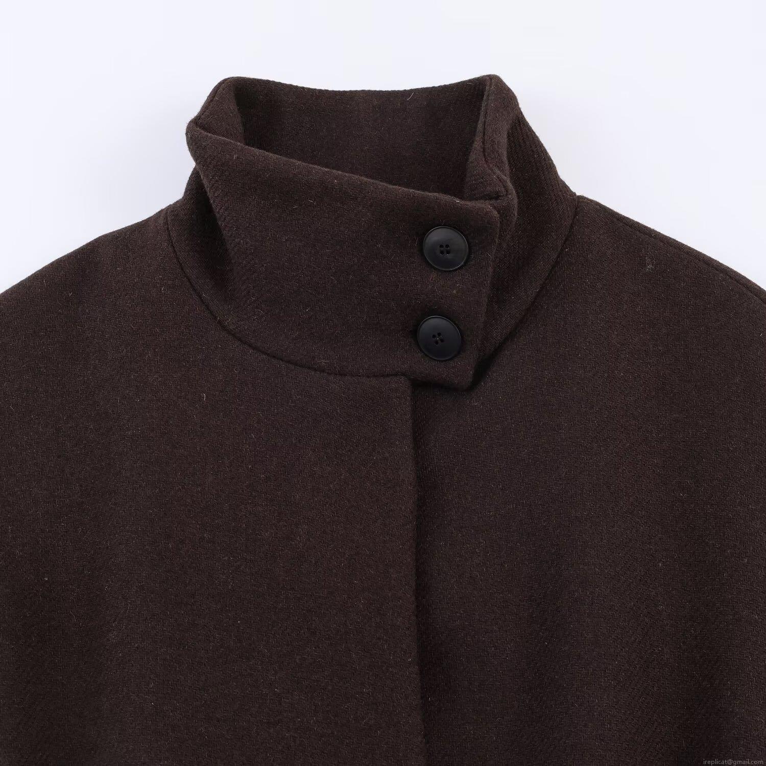 • Women's Fashion Short Wool Like Coat With Belt Layered Design Stand Collar Wide Sleeve Outerwear Elegant Jacket For Daily Party Work