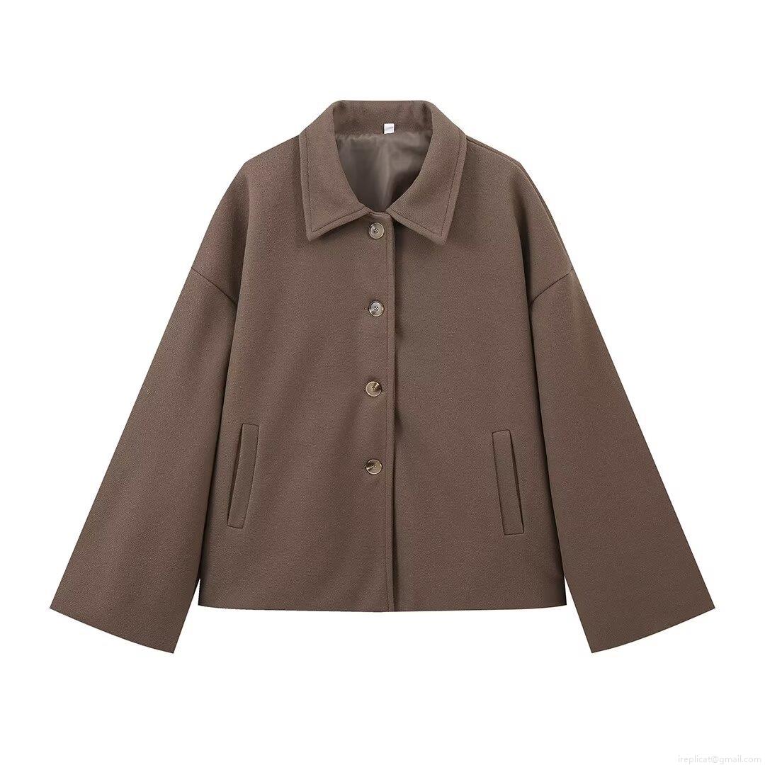 • Women's Fashion Short Woolen Jacket Autumn Winter Lapel Long Sleeve Single Breasted Solid Color Polyester Coat For Ladies Casual Streetwear Outerwear