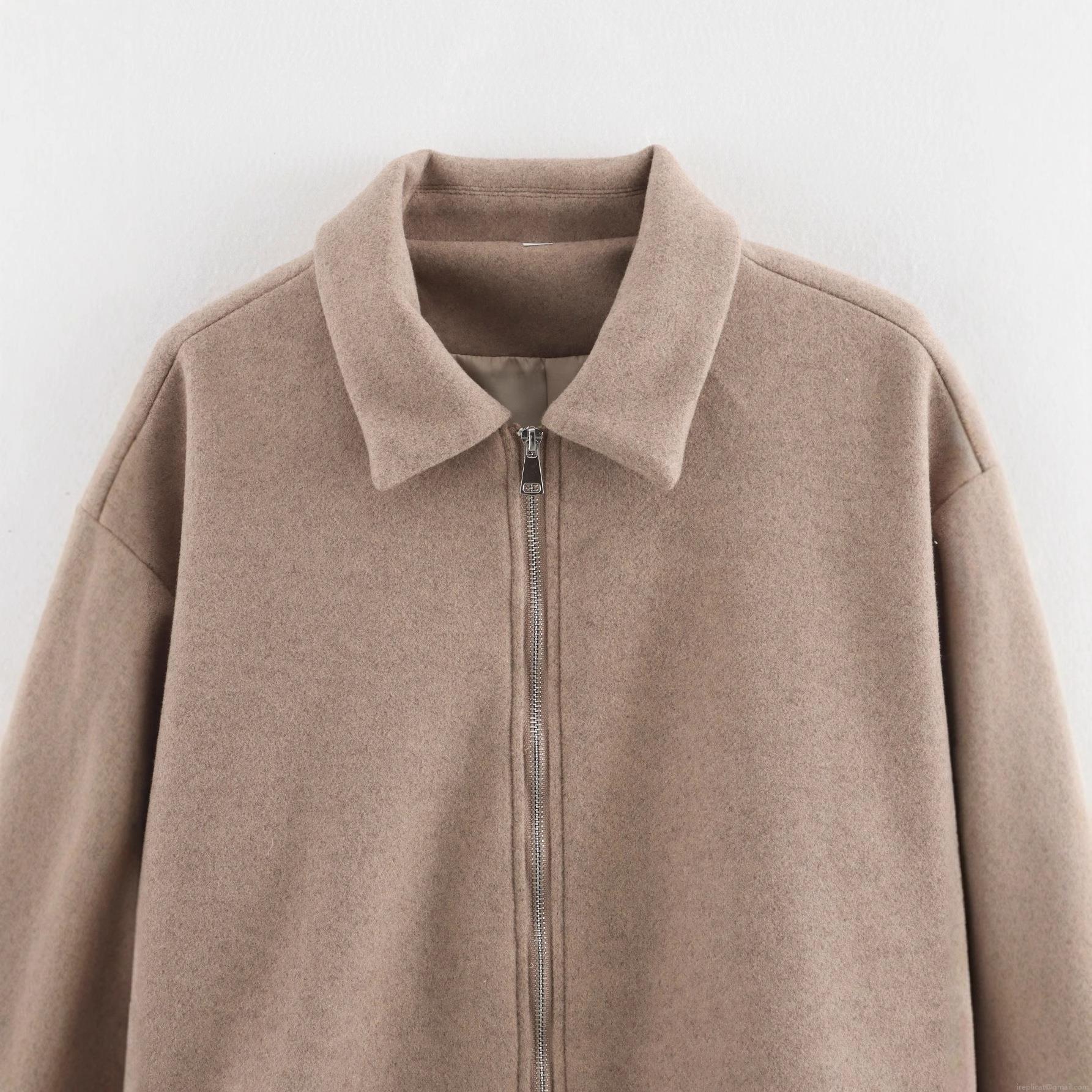 • Women's Fashion Short Woolen Tweed Jacket Elegant Lapel Collar Metal Zipper Drop Shoulder Autumn Winter Warm Outerwear For Ladies