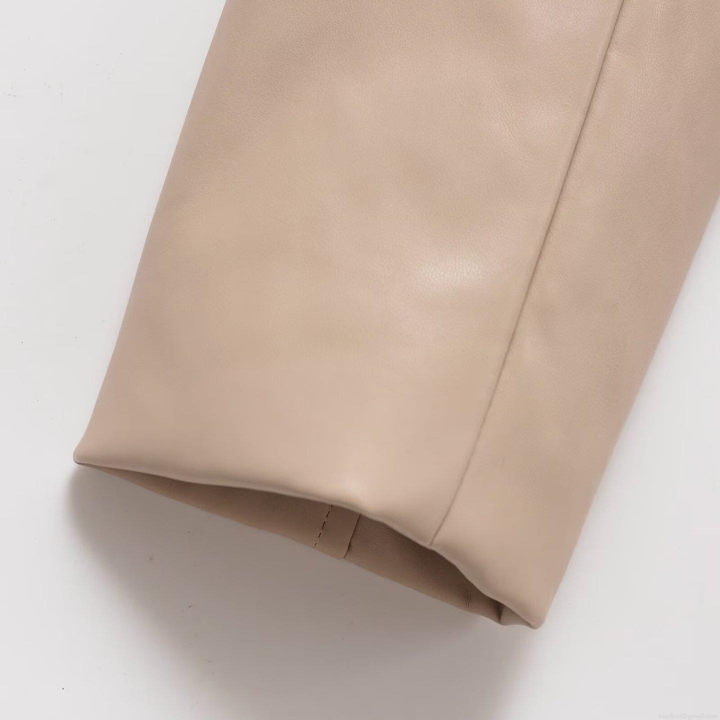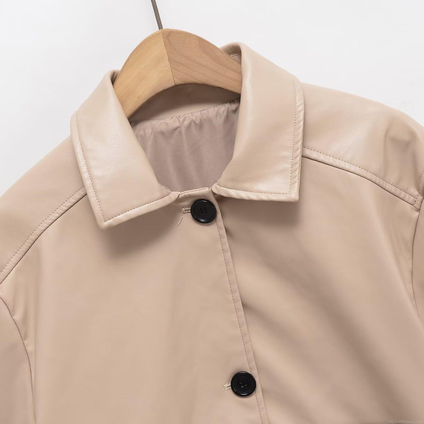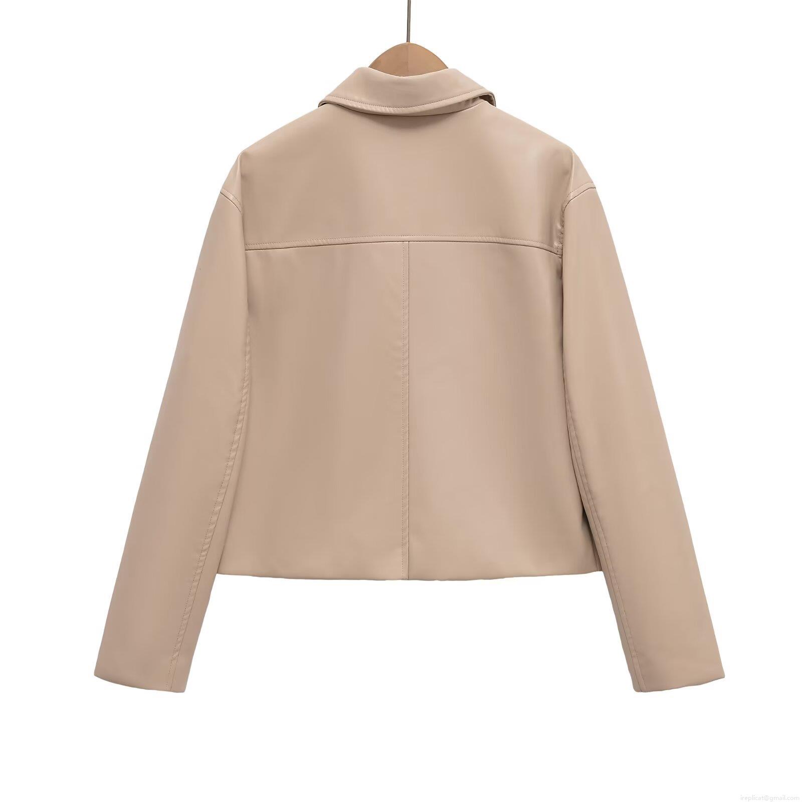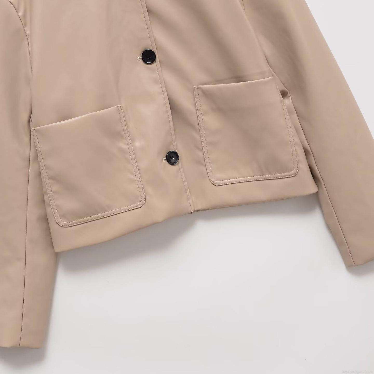 • Women's Fashion Simple Faux PU Leather Jacket Lapel Single Breasted Short Outerwear Coat With Pockets For Autumn Office Daily Casual Wearing