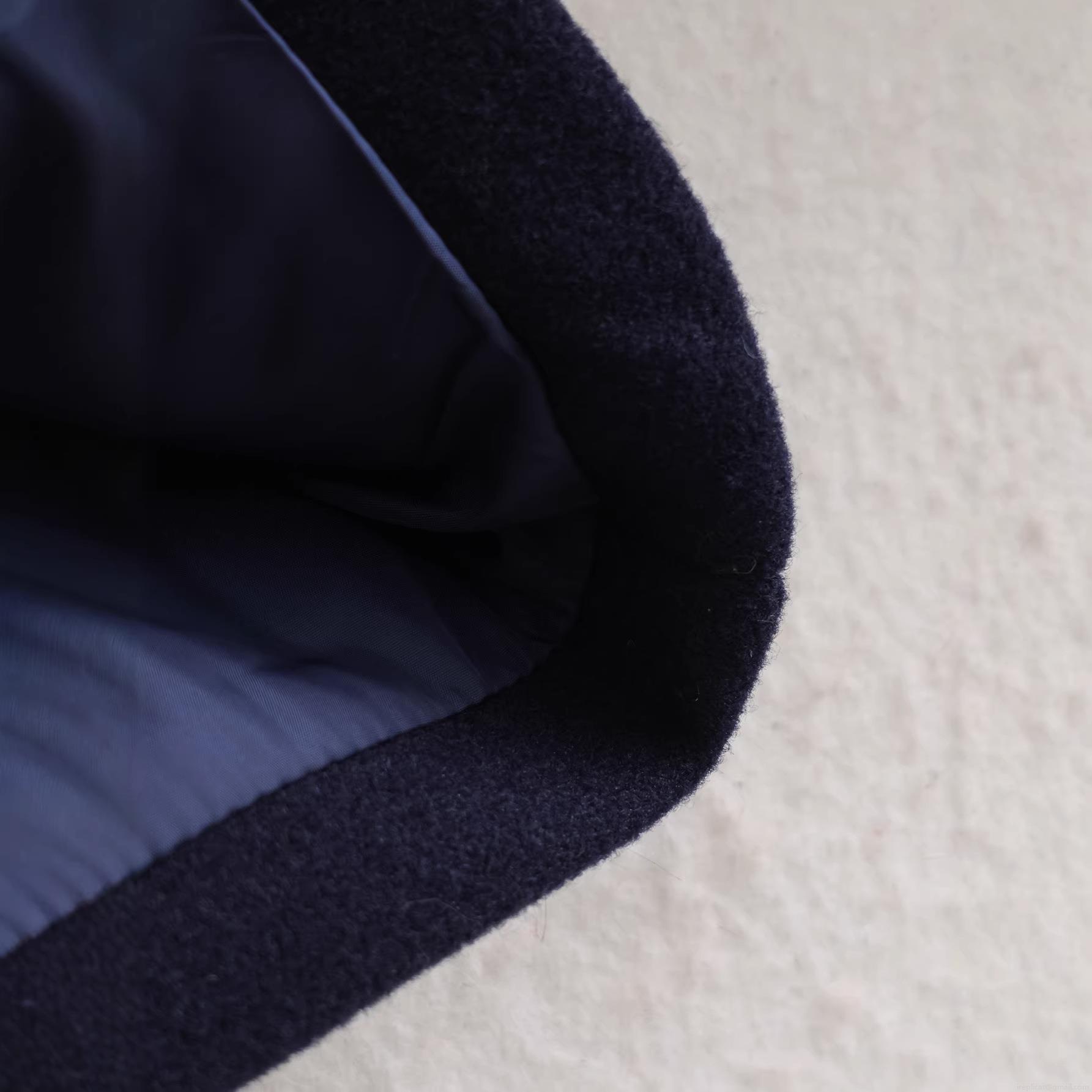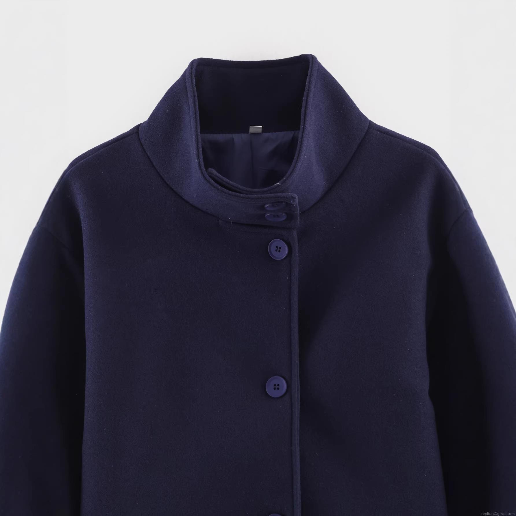 • Women's Fashion Stand Collar Woolen Coat Single Breasted Navy Blue Casual Outerwear Loose Short Jacket Streetwear For Ladies Winter