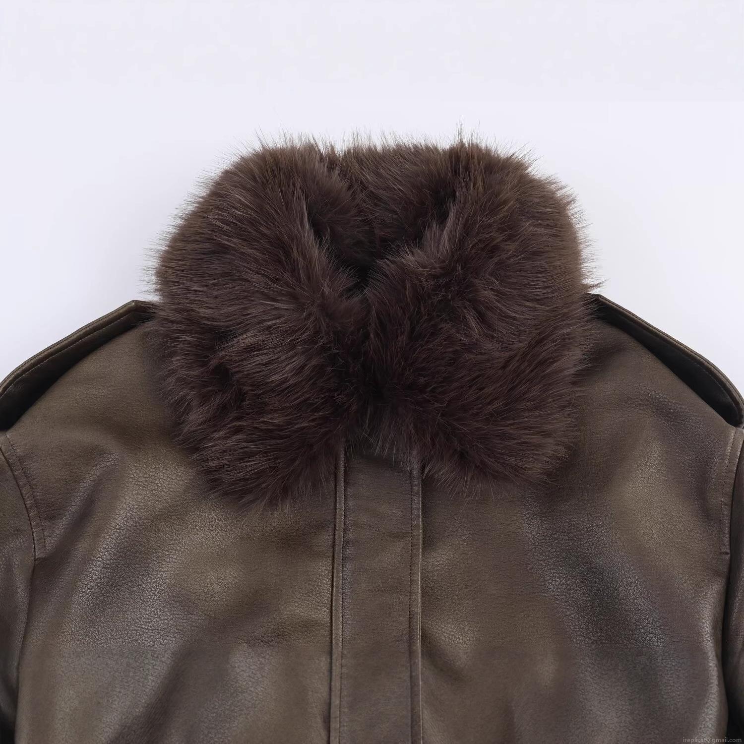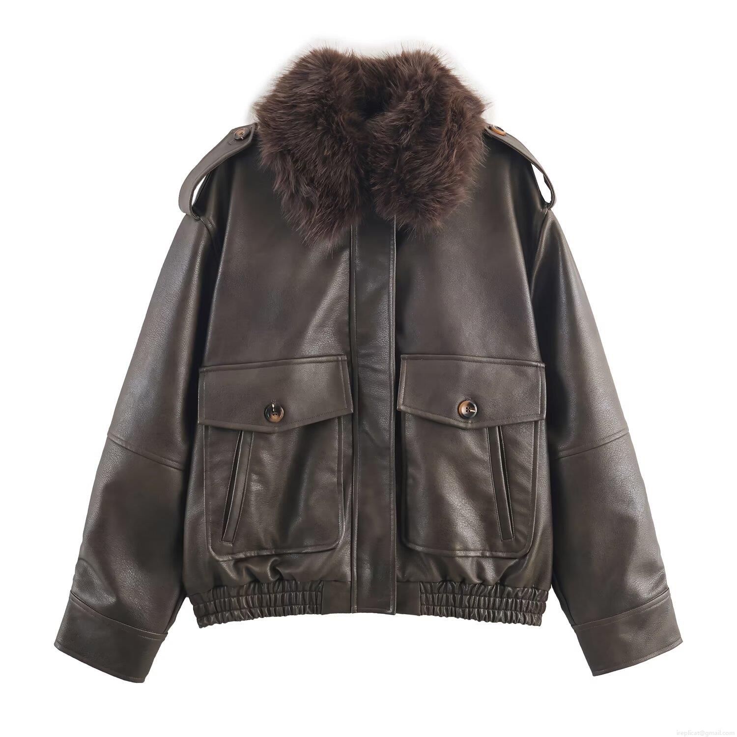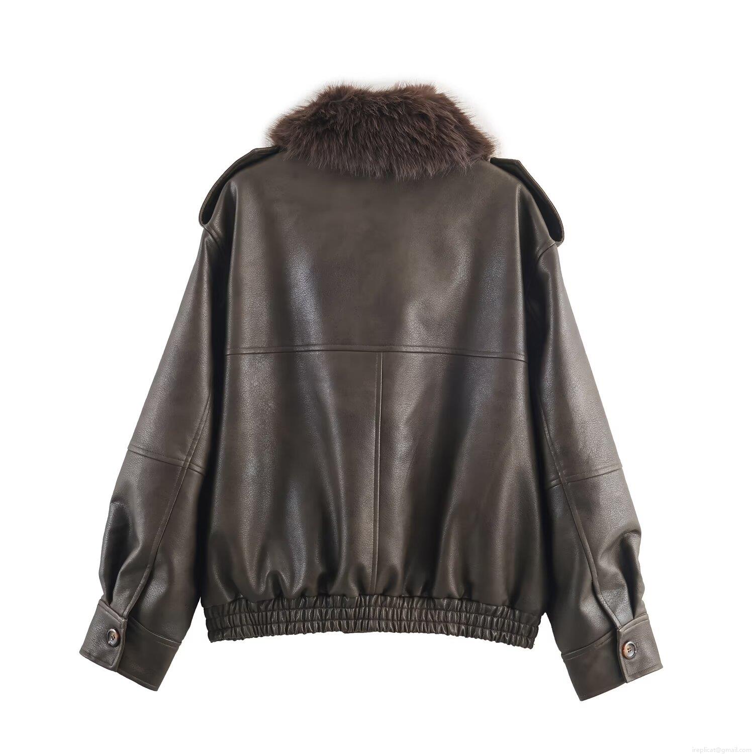 • Women's Fashion Suede Effect Jacket with Removable Faux Fur Collar Loose Bomber Style Casual Dark Brown Long Sleeve Winter Outwear