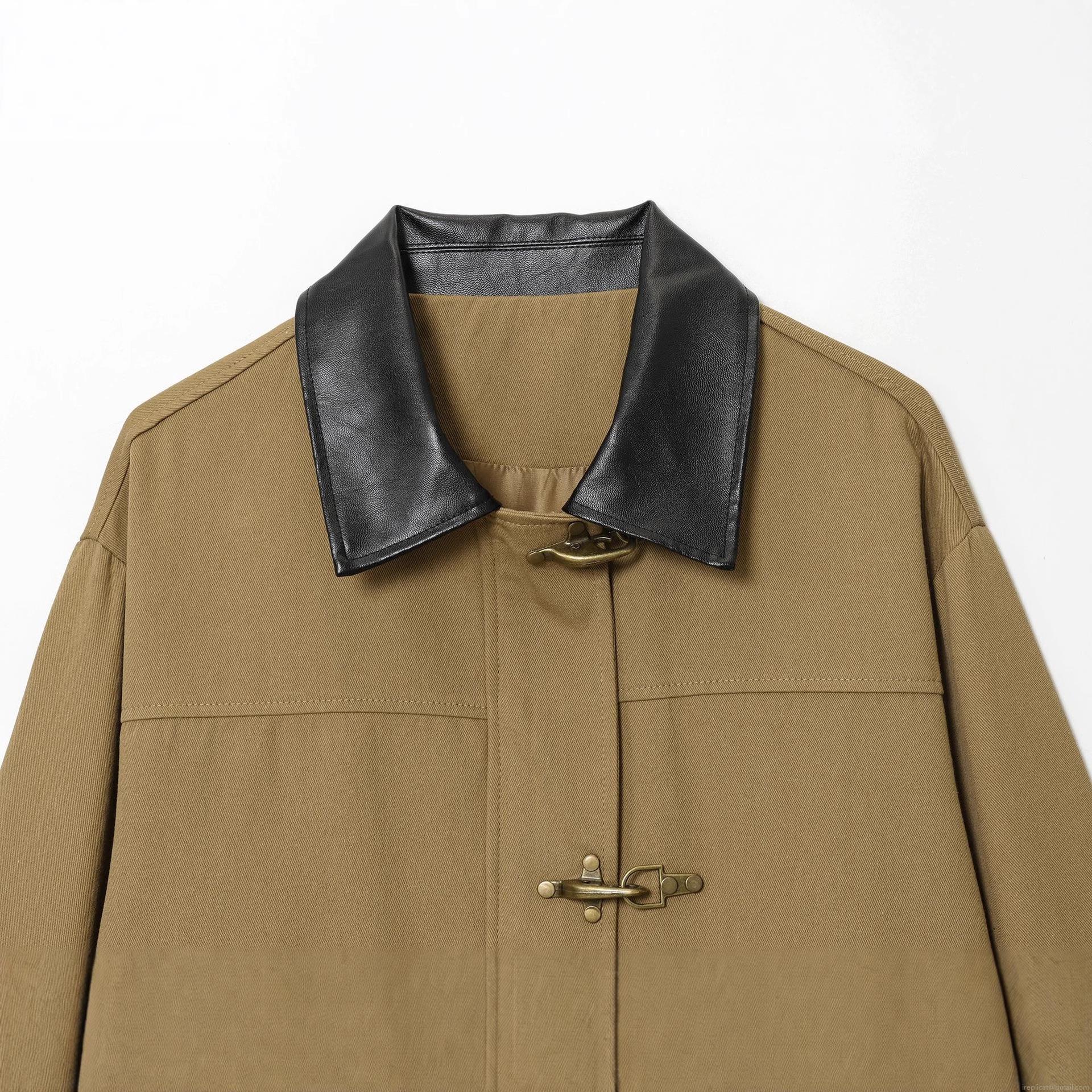 • Women's Fashion Suede Jacket Vintage Contrast Leather Collar Khaki Coat With Metal Hook Buckles Loose Casual Streetwear Workwear Jacket For Women Autumn Winter