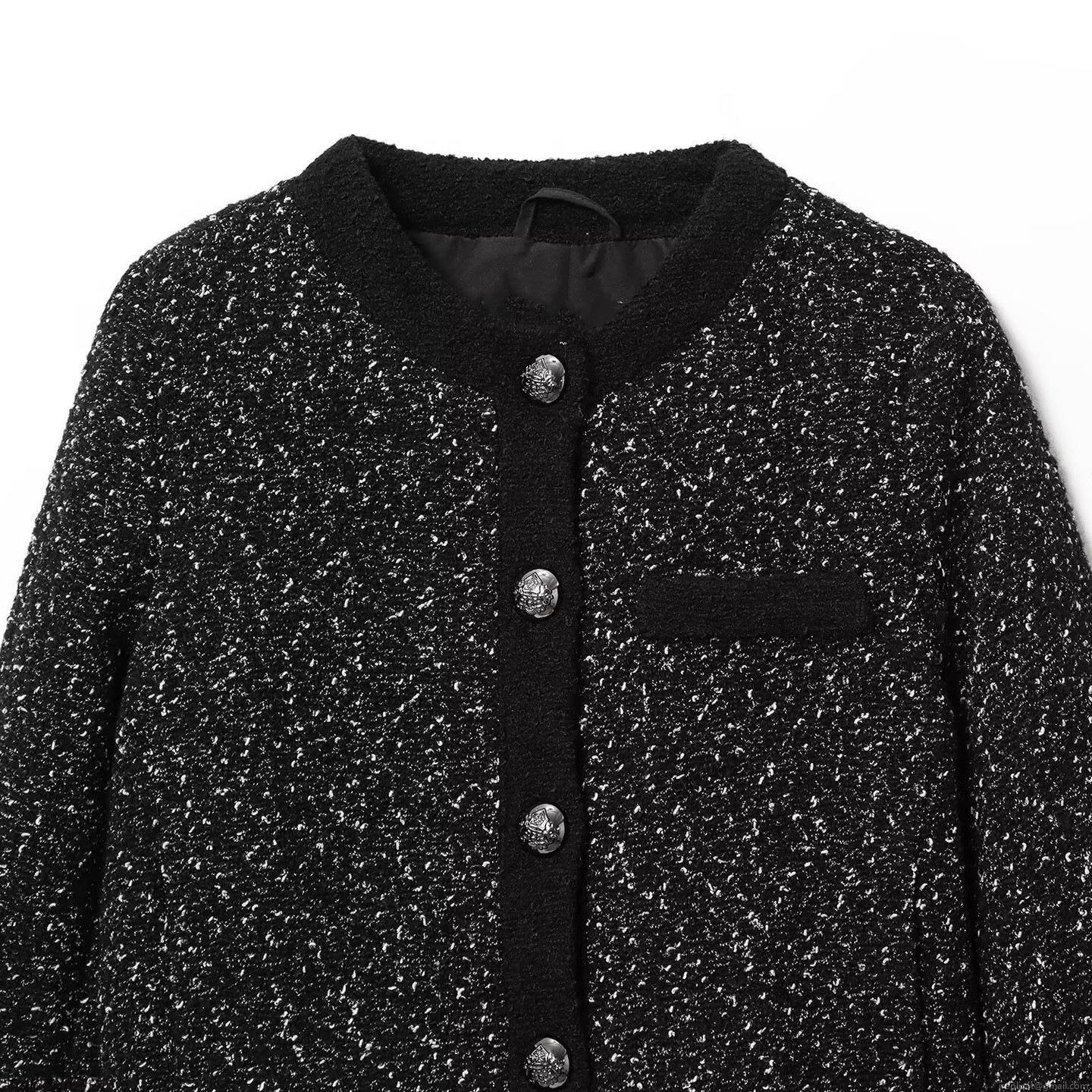 • Women's Fashion Textured Tweed Jacket Single Breasted Round Neck Long Sleeve Short Coat Elegant Commuter Outerwear With Metal Buttons For Ladies