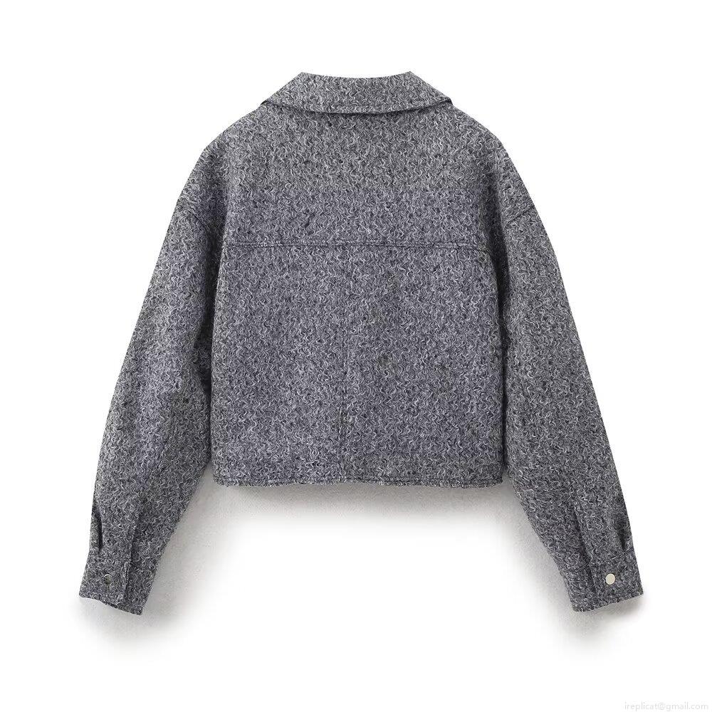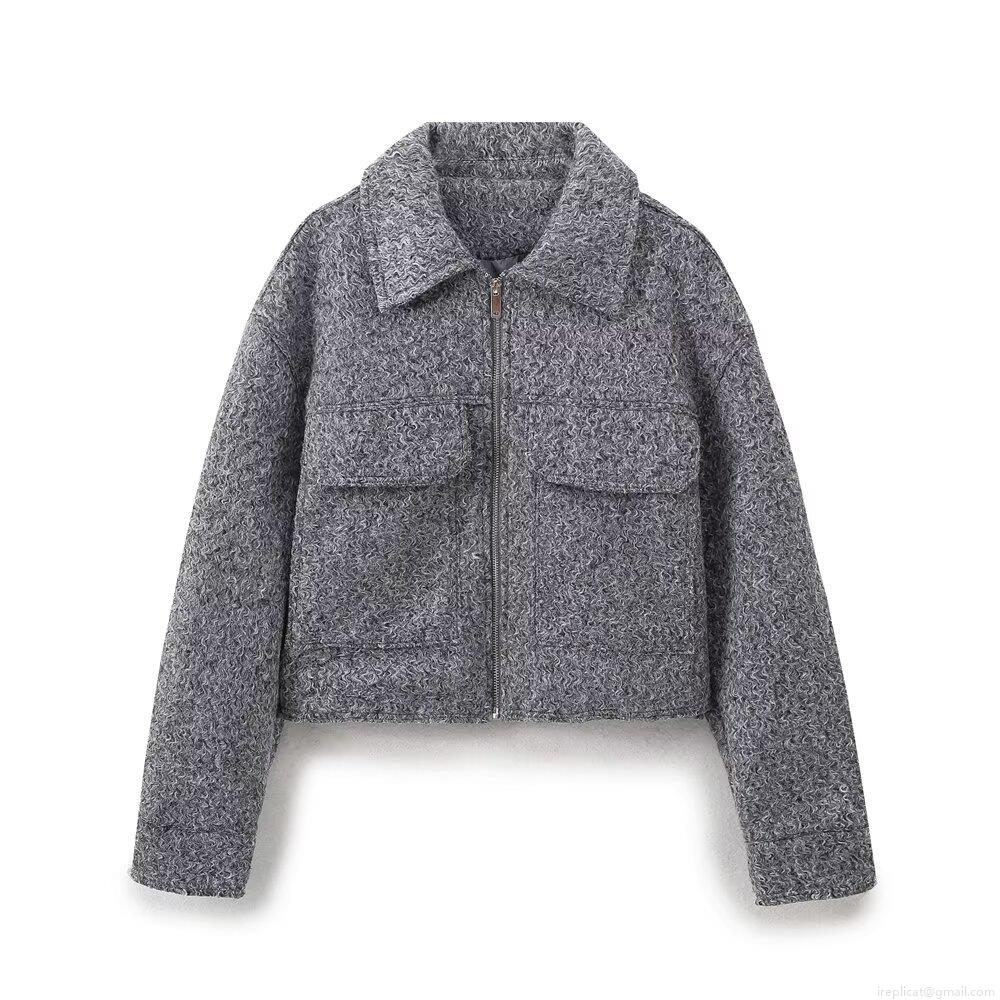 • Women's Fashion Two-Tone Texture Bouclé Fleece Short Jacket Zipper Long Sleeve Turn-down Collar Outerwear Vintage Street Style Warm Coat for Winter