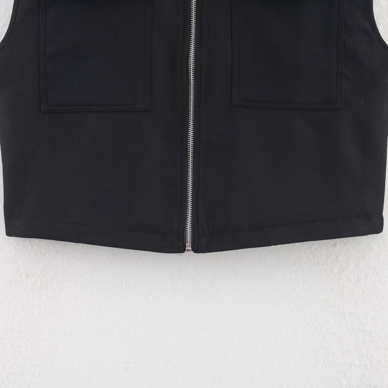 • Women's Fashion Utility Vest Stand Collar Sleeveless Jacket Solid Color 100% Polyester Zipper Pockets Casual Outwear Basic Minimalist Style for Women