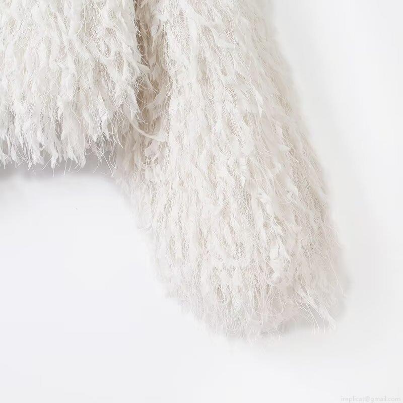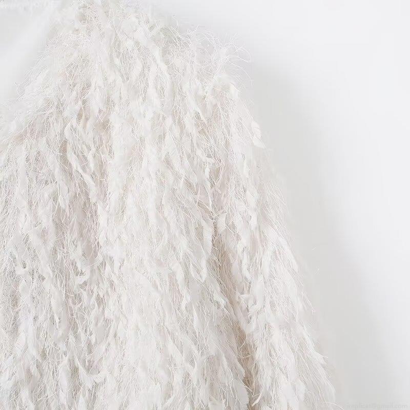 Women's Fashion White Tassel Fringe Jacket Round Neck Long Sleeve Baseball Uniform Coat Loose Streetwear Outerwear For Women