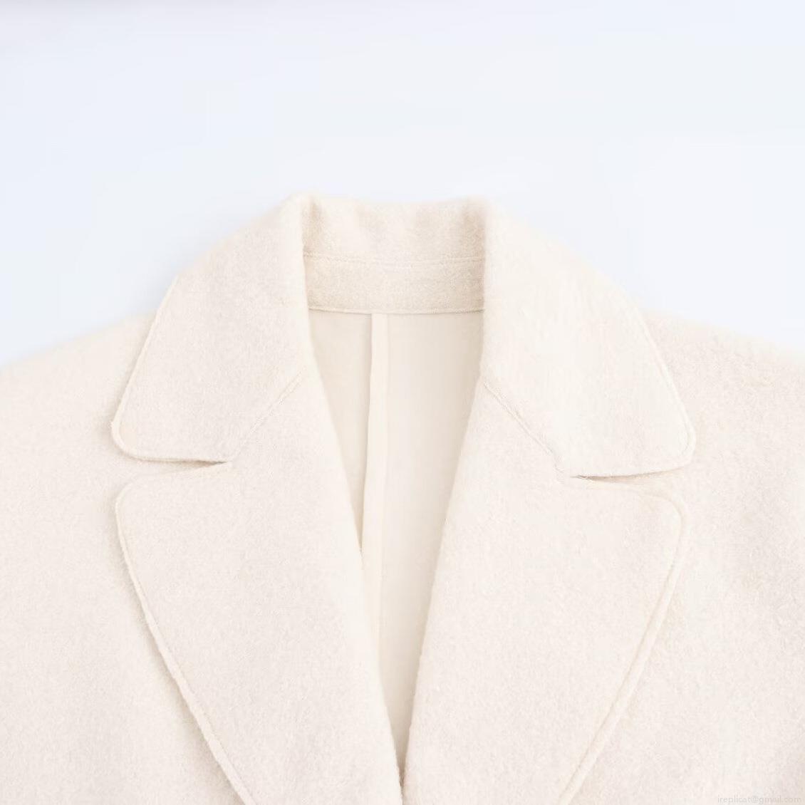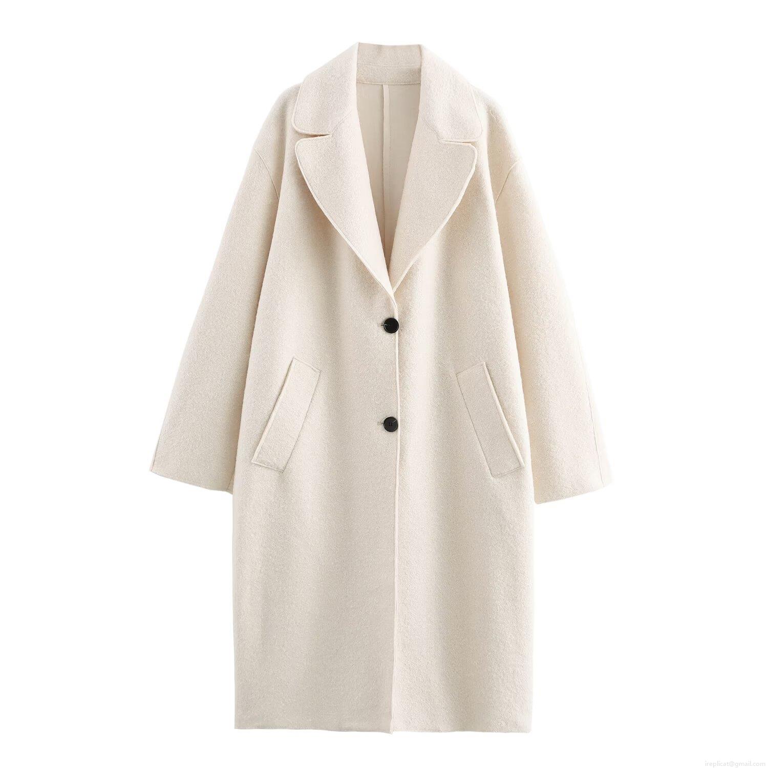 • Women's Fashion Winter Long Woolen Coat Elegant Loose Fit Lapel Single-Breasted Solid Color Cream White Warm Casual Commuting Outerwear For Ladies